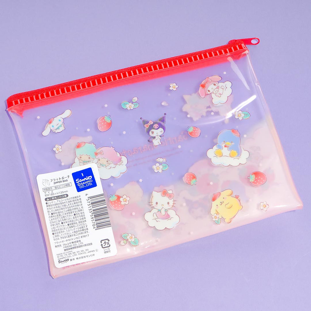 Store your lipstick, charms, and other knick-knacks inside this kawaii flat pouch. It's decorated with prints of different Sanrio characters picking strawberries in heaven! This pouch has a transparent body so you can easily see what's inside.