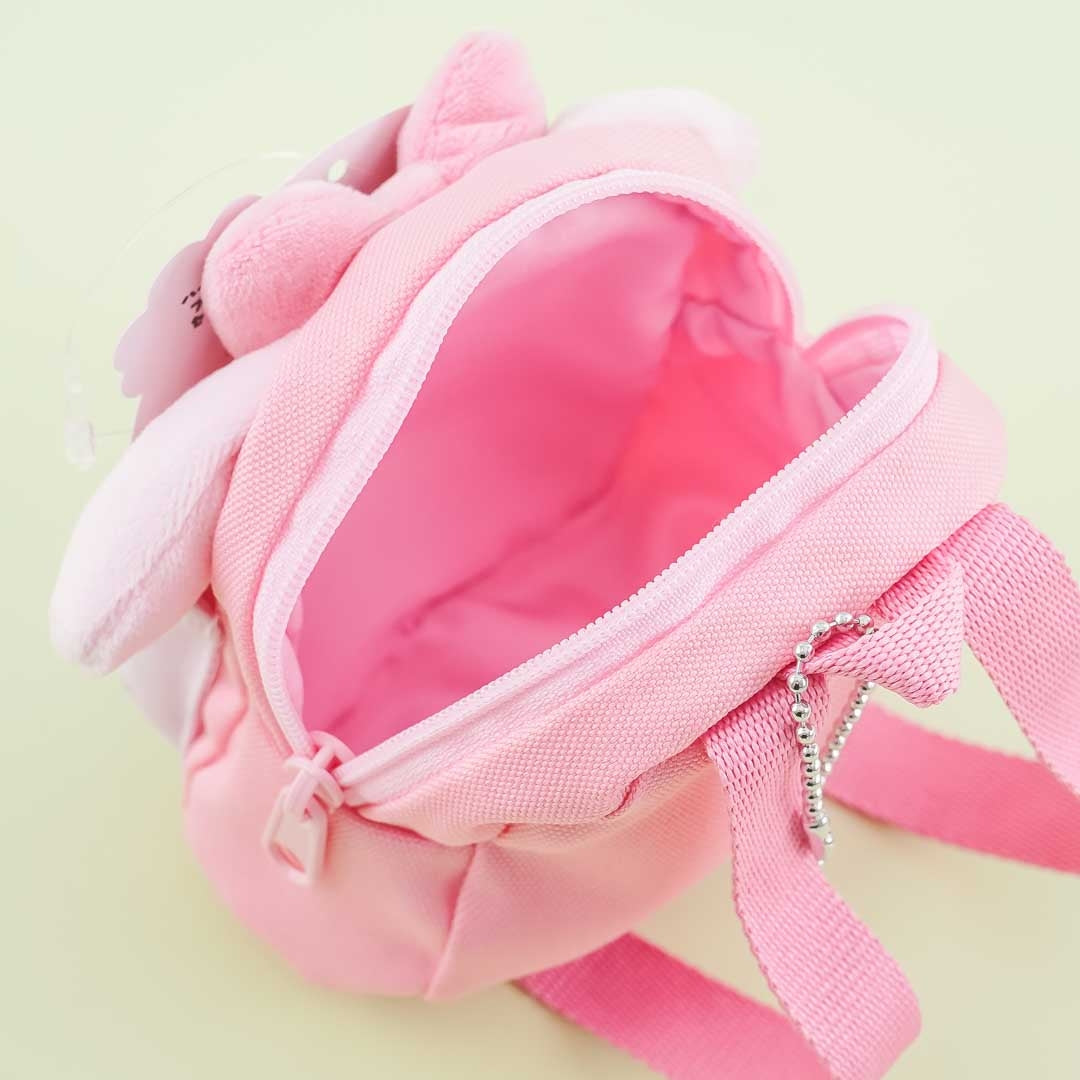 Store loose change, your earphones, and other small-sized essentials inside this kawaii zippered pouch that resembles a miniature backpack! It features a print of My Melody on the roomy front pocket where you can place any of the plushie badges from the same series. The handy pouch also has pop-out bunny ears and comes with a detachable ball chain — so you can use it to accessorize your favorite purse as well.