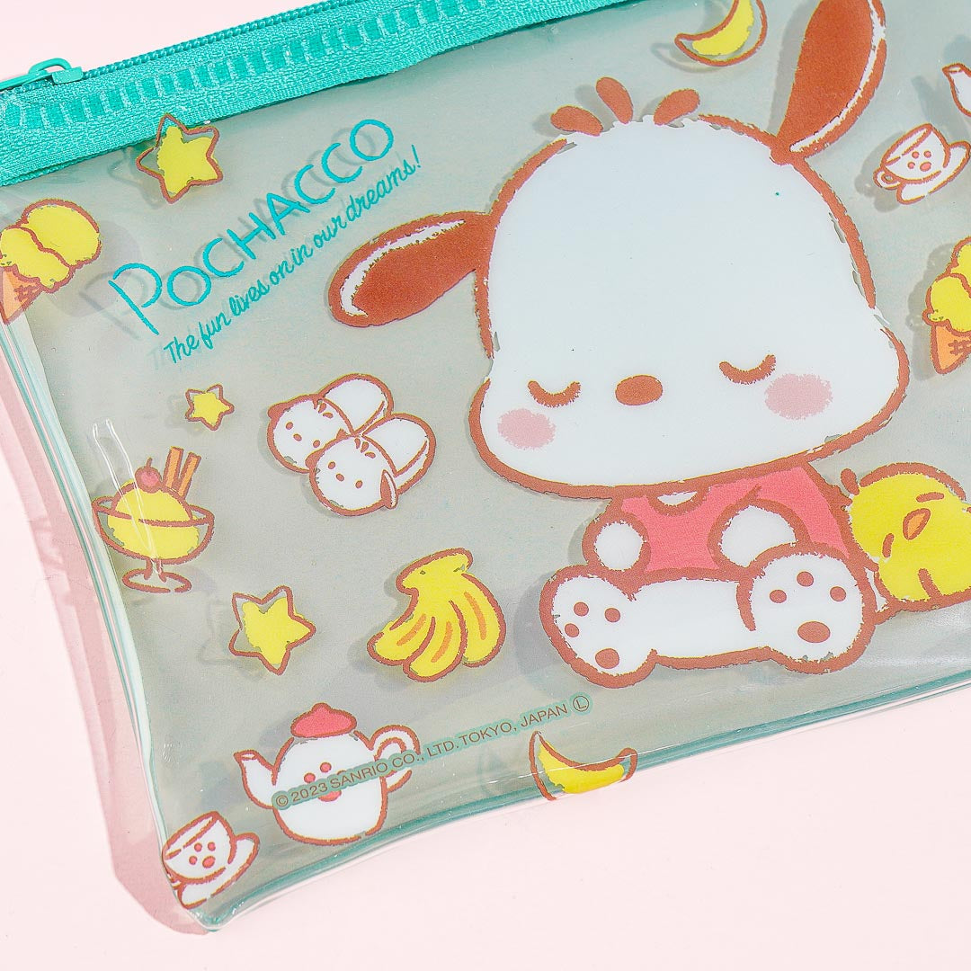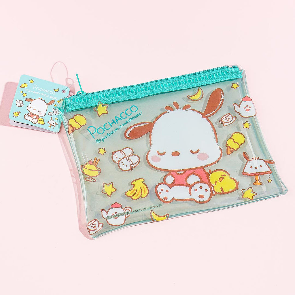Keep loose change, earphones, and other small knickknacks inside this zippered flat pouch! It’s decorated with an illustration of a sleeping Pochacco dreaming of his fave things like bananas, ice cream, and more!