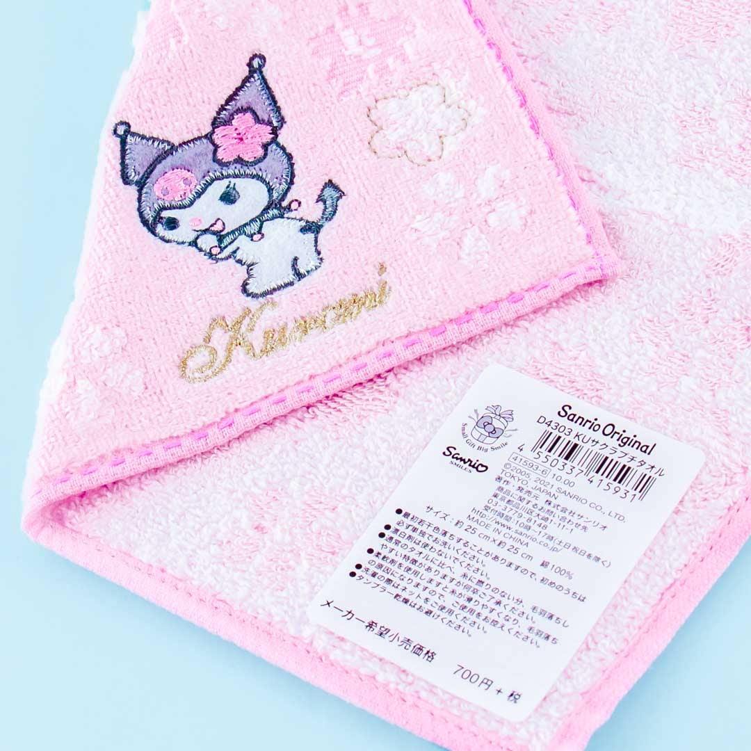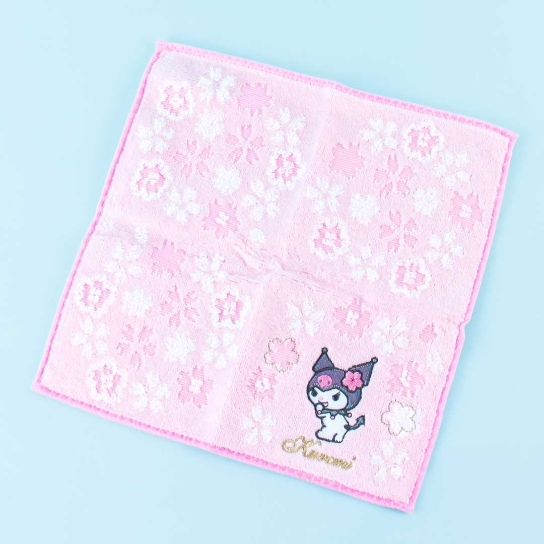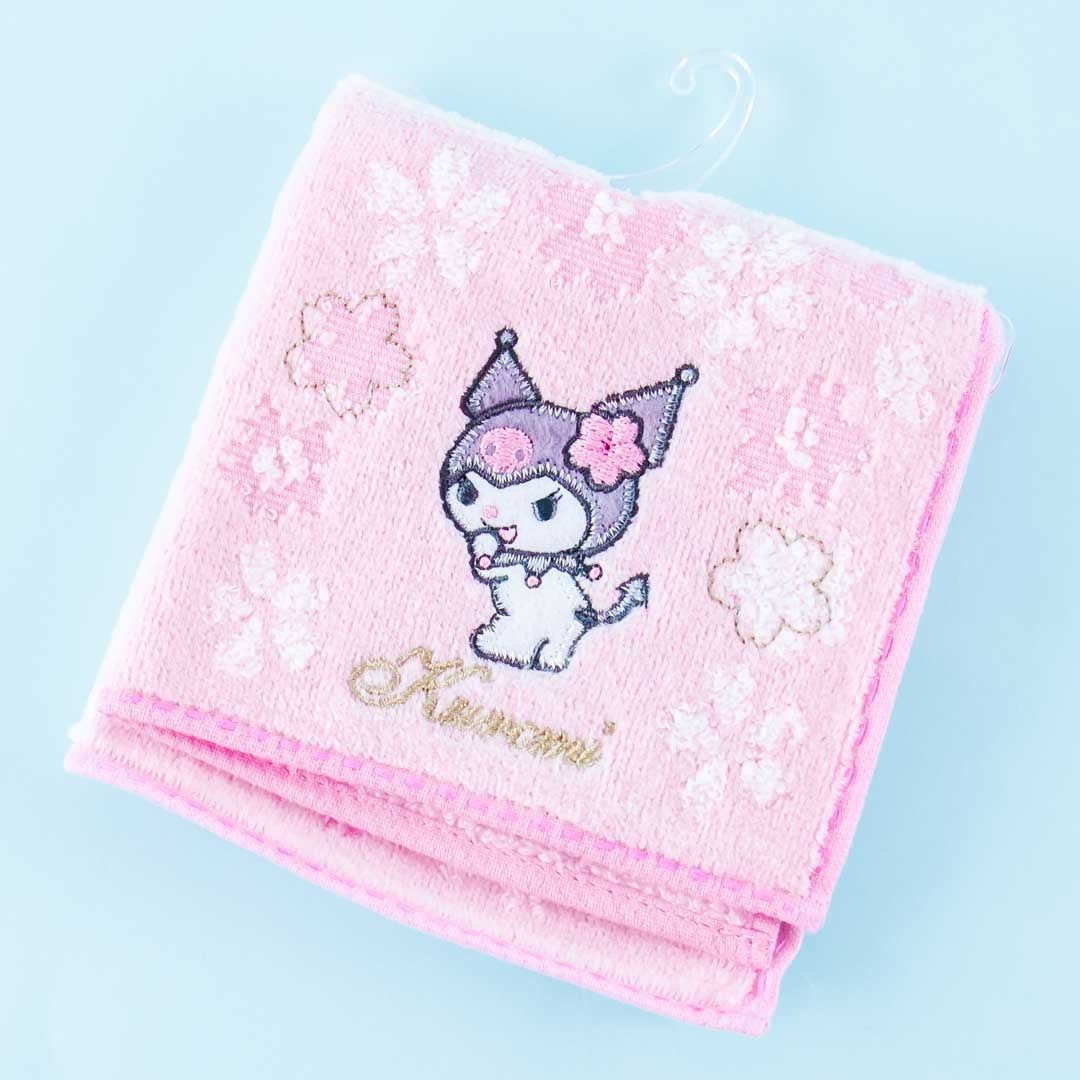 • A hand towel with embroidery featuring Kuromi and sakura flowers