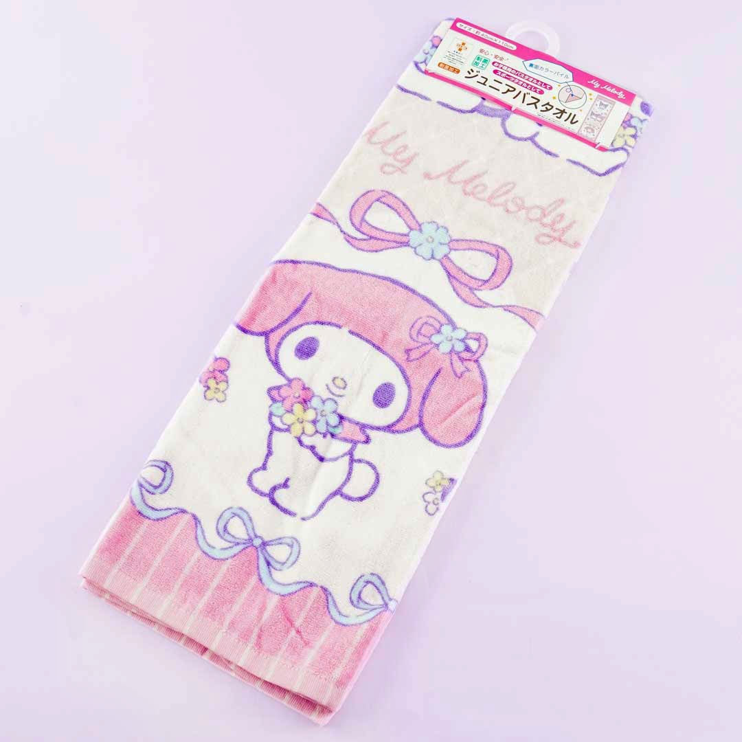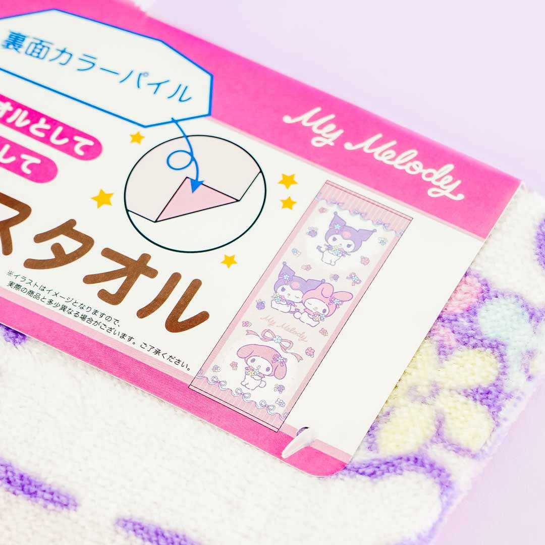 This super-soft bath towel is covered with illustrations of My Melody and Kuromi. You can dry yourself up using this towel made of 100% cotton after a long warm shower!
