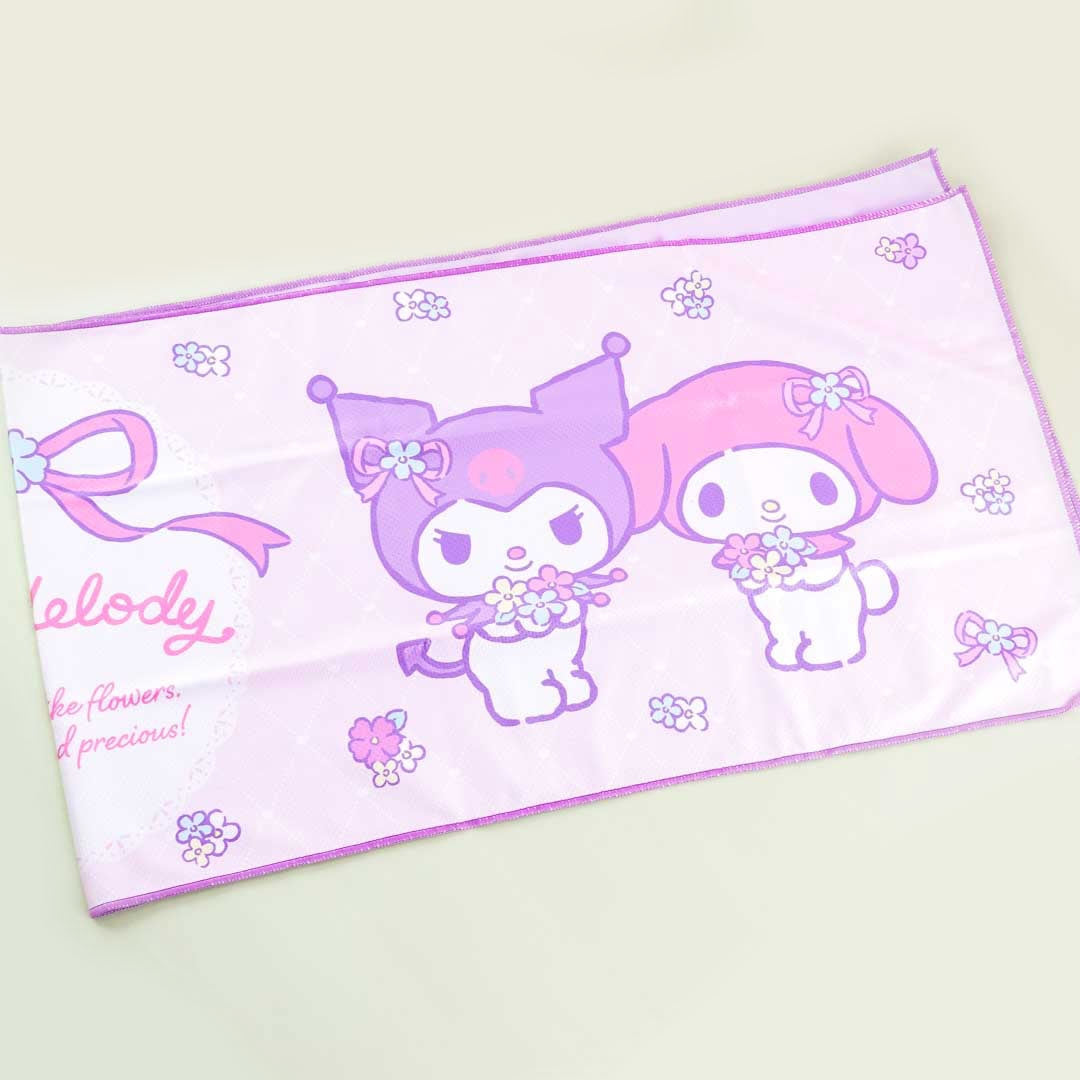 A super cute long towel featuring illustrations of Kuromi and My Melody