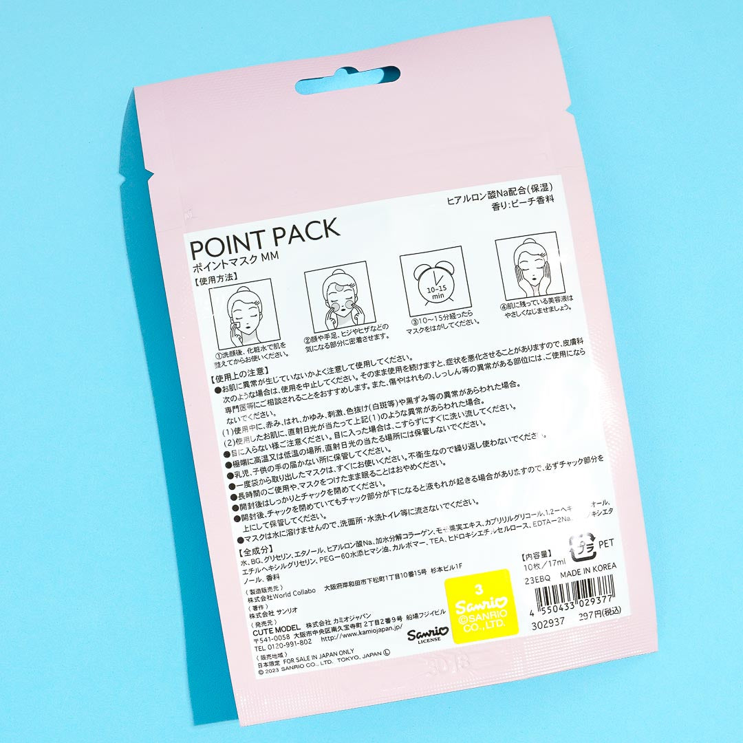 These kawaii moisturizing patches feature cute prints of My Melody's face. Each patch is scented with peach and contains hyaluronic acid. You can use them to pamper yourself after a long day!