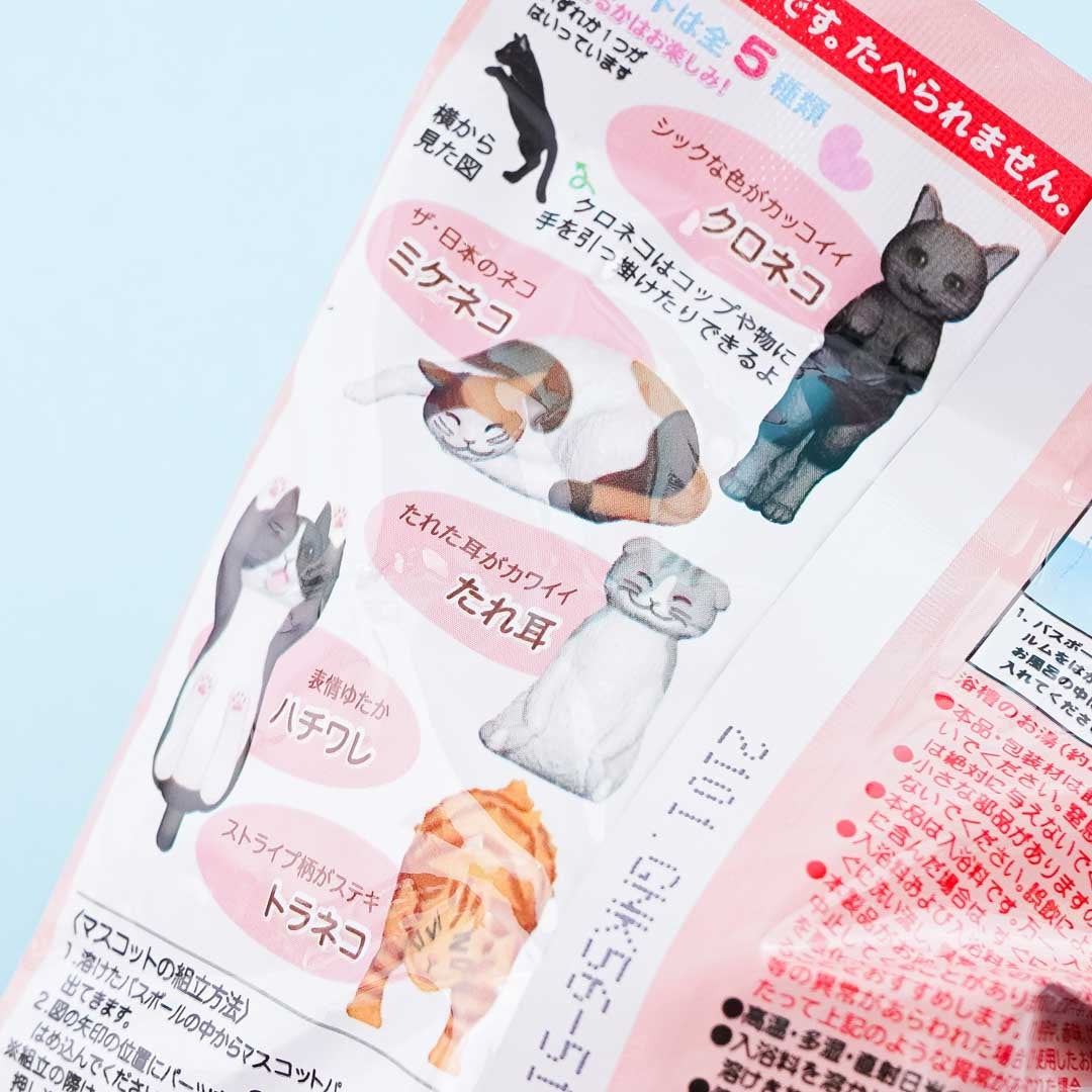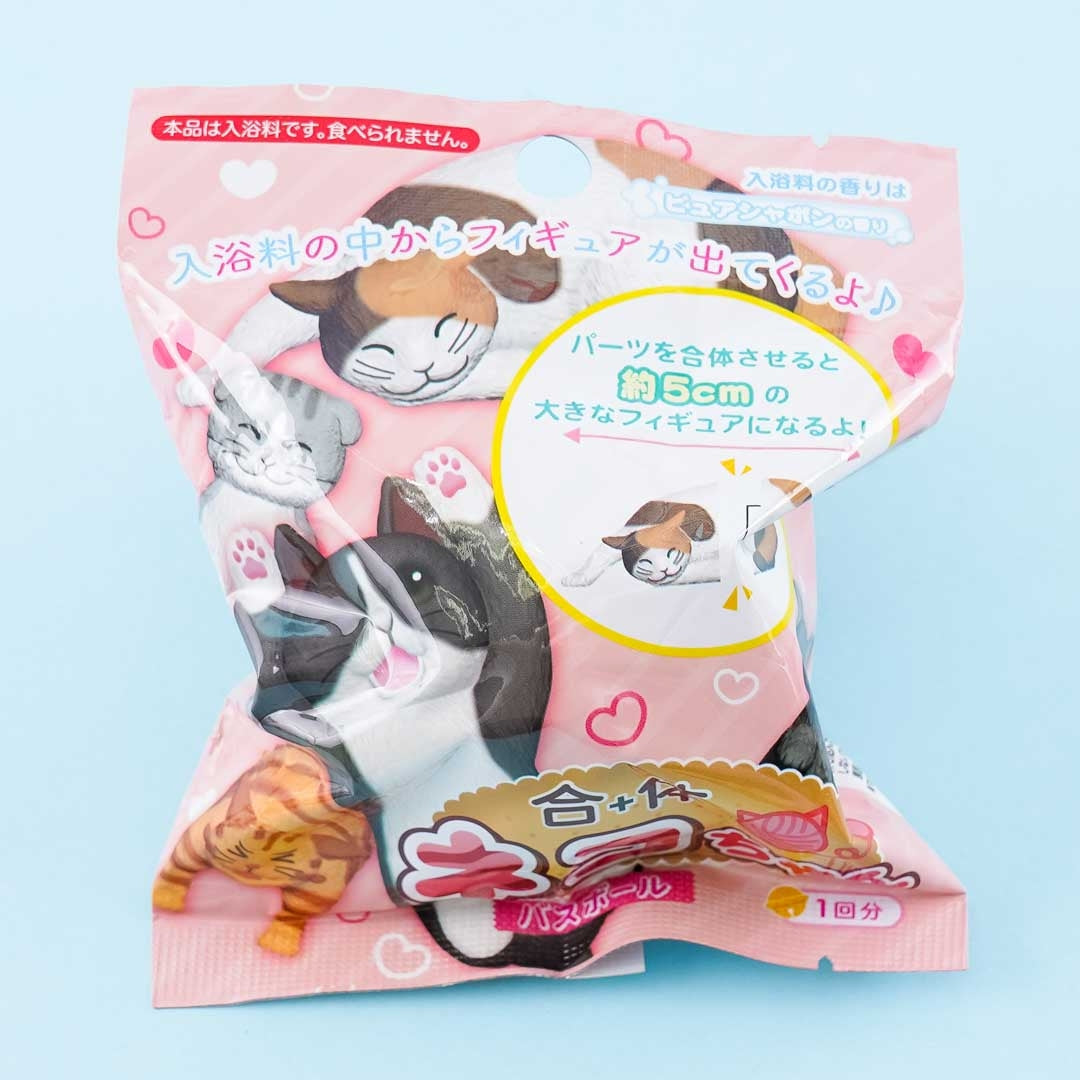 Have fun in the bathroom with this super cute bath bomb! Place it in the water to reveal a kawaii cat figure randomly selected from a set of 5. This bath bomb has a refreshing soap scent.