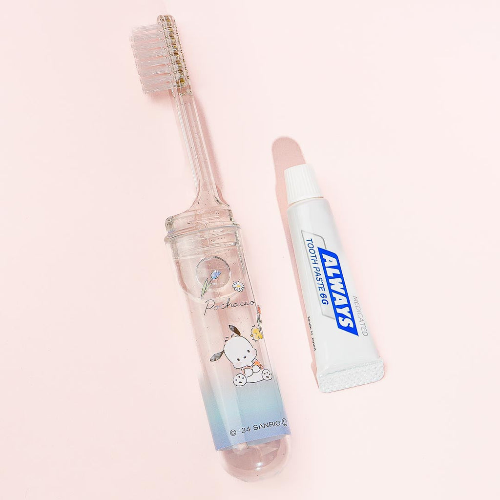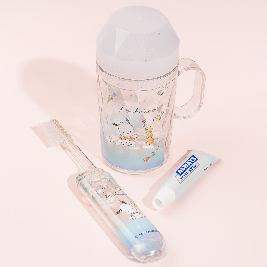 Keep your teeth clean and healthy using this kawaii toothbrush set featuring Pochacco. It comes with a travel toothbrush with a transparent body, a small toothpaste tube, and a cute cup that looks like a diamond.