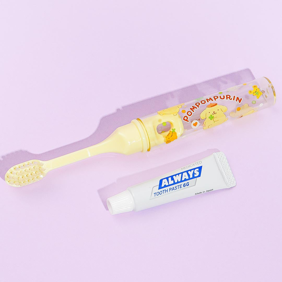 This kawaii toothbrush set features a Pompompurin with lucky four-leaf clovers! Use this to keep your breath fresh every day. This set even comes with a Pompompurin-shaped lid for added cuteness!