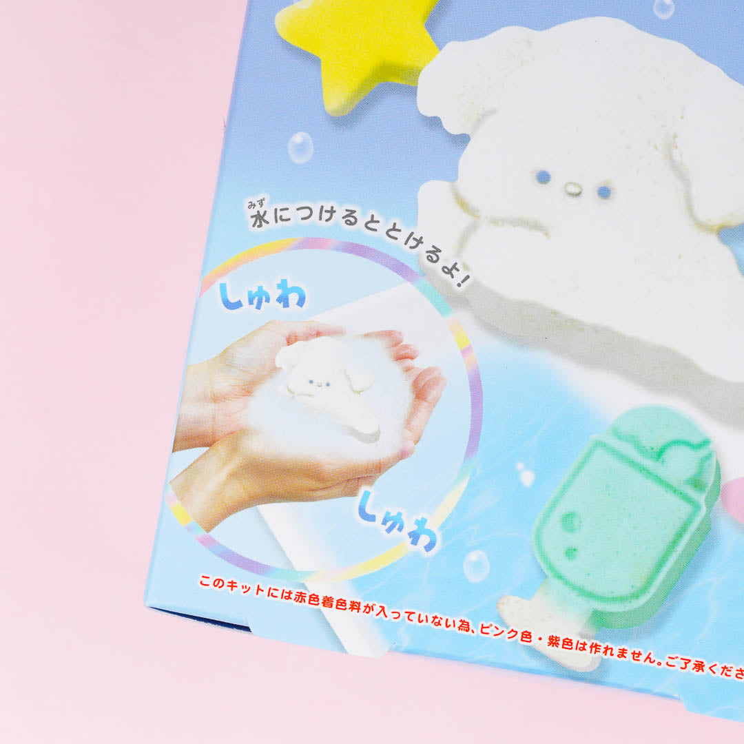 Make your own bath bombs with this kawaii set! It has all the items you need to have a fizzy bath. This set lets you make a puppy, a star, and an ice cream-shaped bomb.