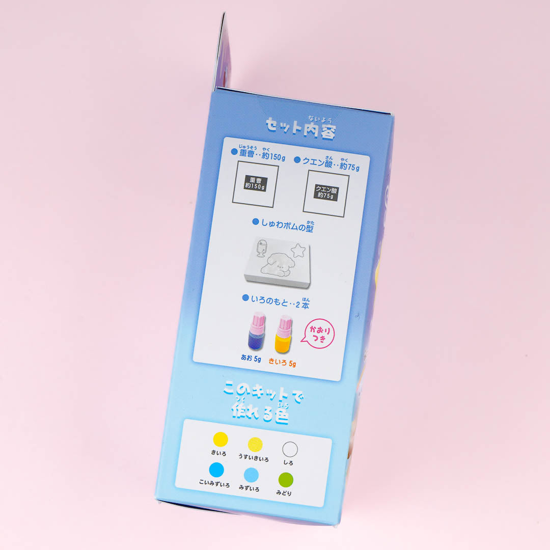 1 x baking soda, 1 x citric acid, 1 x mold set, and 2 x color bottles