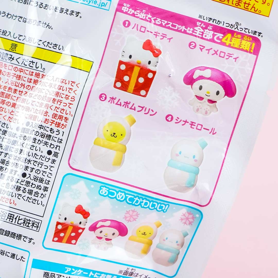 A cute bath bomb with a mystery Sanrio character winter edition figure inside