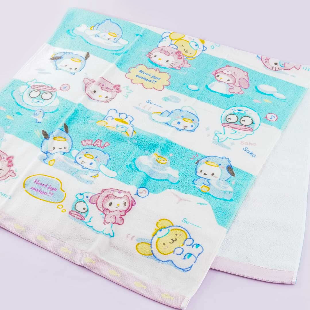 This super cute long towel is decorated with illustrations of Sanrio characters playing with ice! You can use this super-soft cotton towel for drying yourself after a warm bath!