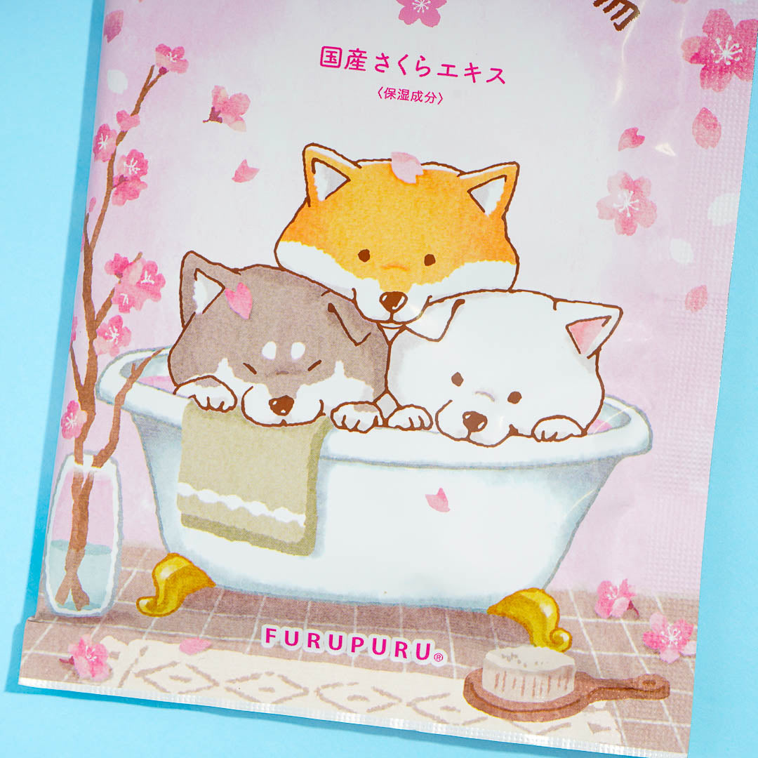This bath salt has cute packaging that features an illustration of Shibanban taking a bath and surrounded by cherry blossoms. Pour this bath salt into the tub for a moisturizing, milky pink bath!