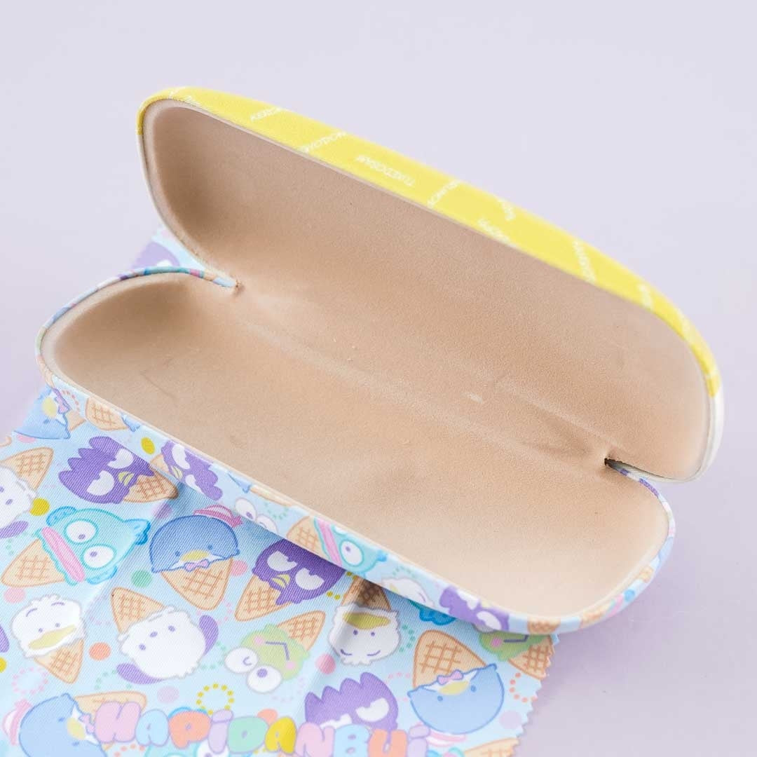A cute eyeglass case featuring illustrations of the Hapidanbui characters as ice cream scoops