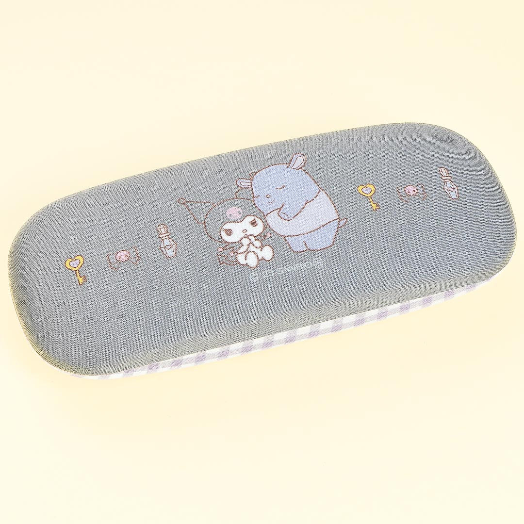Store your eyeglasses in this kawaii hard case! The back-to-back design features cute illustrations of Kuromi and Baku. This case also comes with a matching cloth for cleaning your specs!