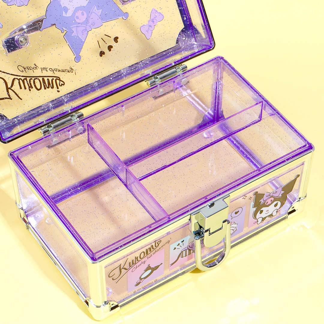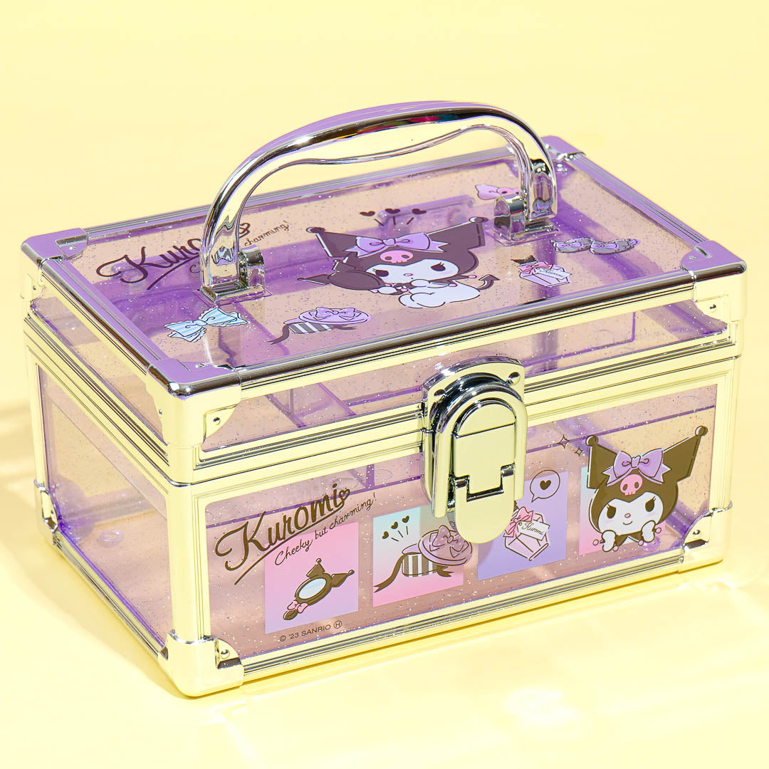 Use this cute vanity case to organize your jewelry, cosmetics, and other beauty items. This glittery container is illustrated with prints of Kuromi having some nice "Me Time." It has a removable tray with multiple compartments so you can easily arrange your things!