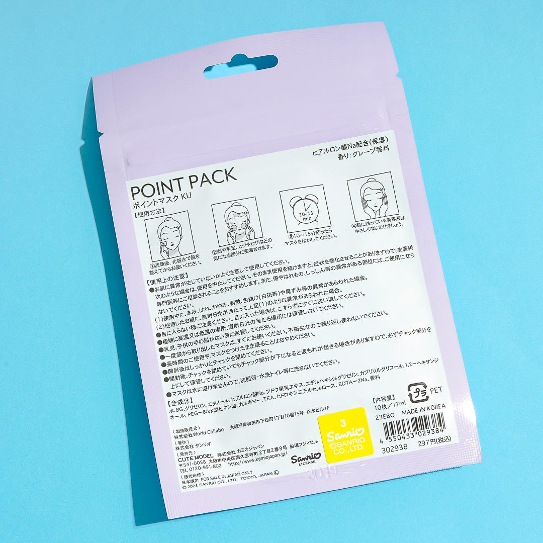 Relax after a tiring day using these moisturizing kawaii patches with hyaluronic acid! Each patch is scented with grapes and features Kuromi's cute face.