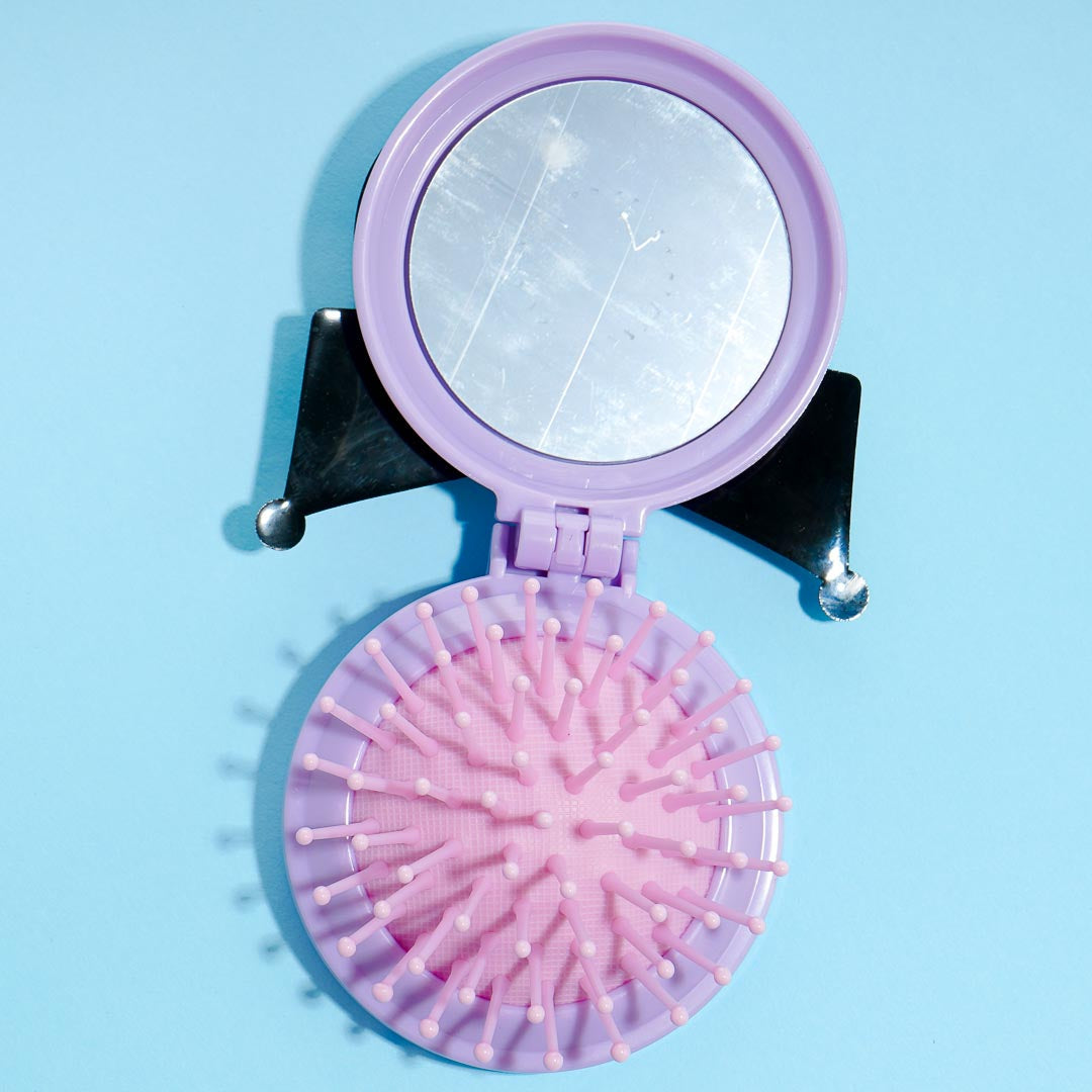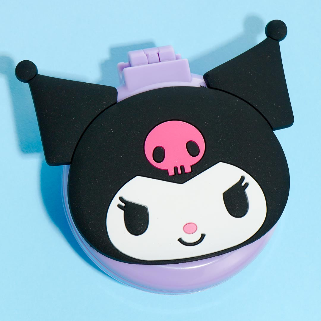 Bring along this cute Kuromi brush and mirror compact. Once you open up the compact, a cute silicon brush pops up that you can use to smoothen the tangles in your hair! Check out your makeup with its handy mirror.