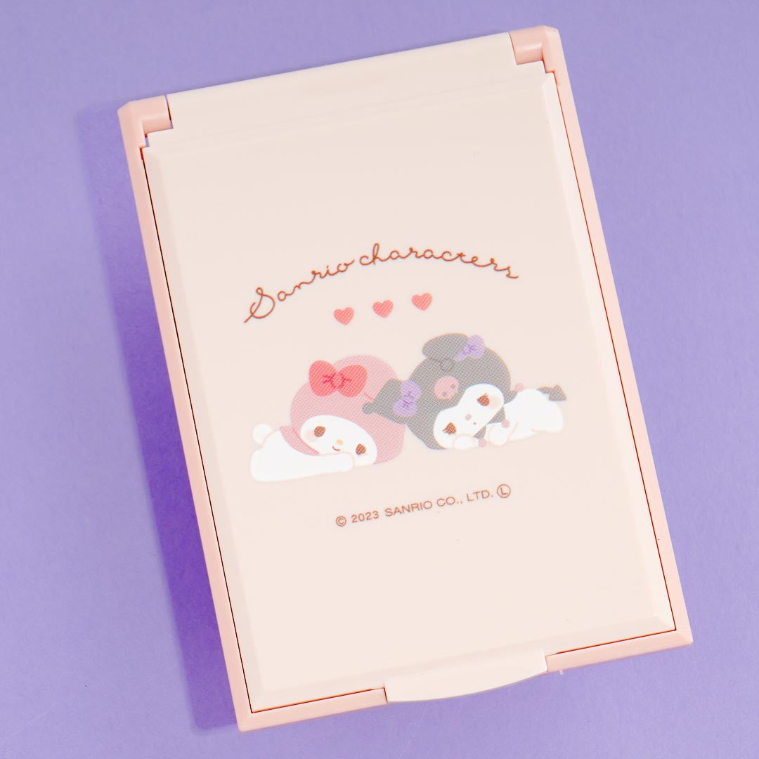 This super kawaii pocket mirror showcases My Melody and Kuromi napping together. Use it to touch up your makeup! It easily fits into pockets and pouches so you can carry it anywhere you go.