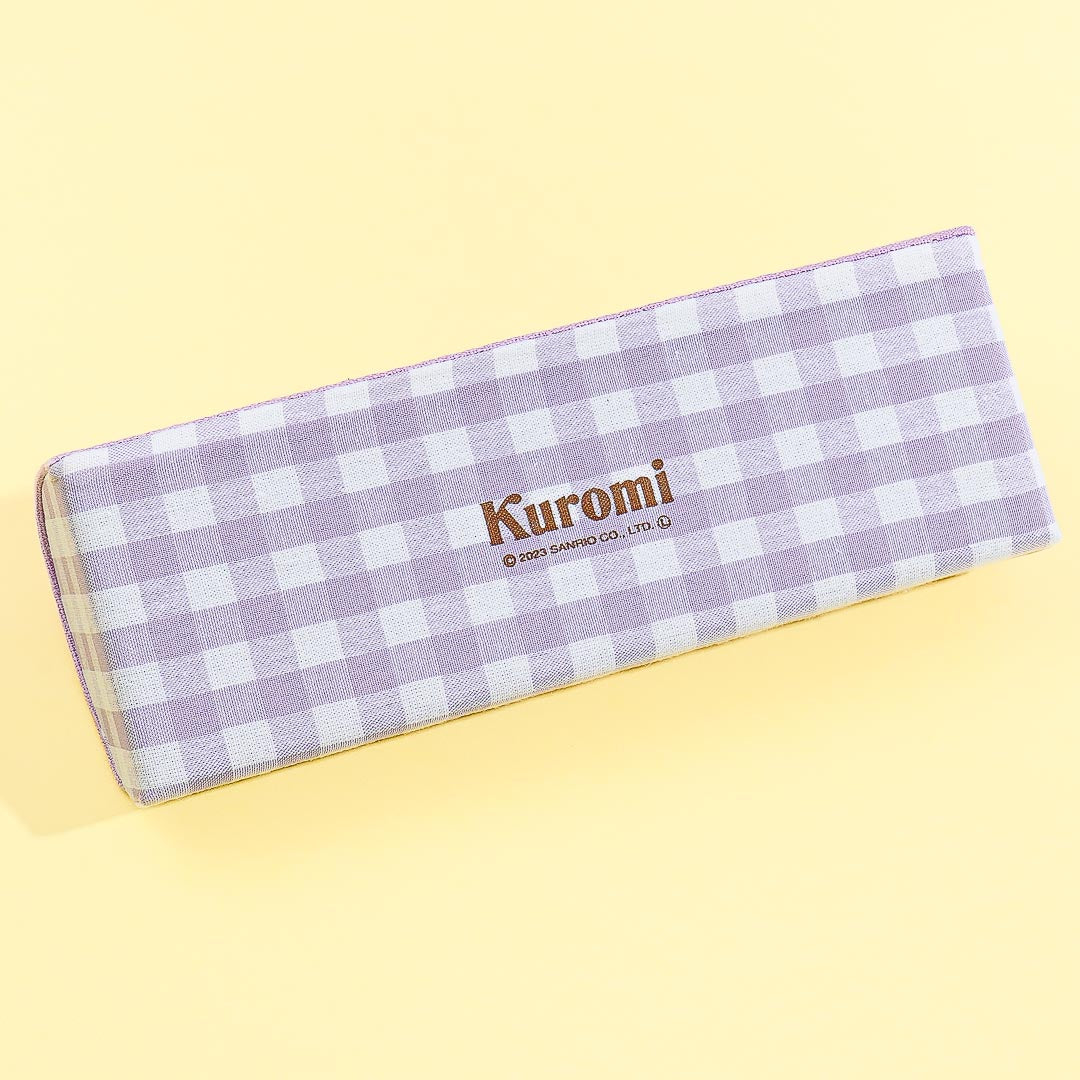Keep your eyeglasses safe by placing them inside this super cute case! It’s decorated with purple gingham patterns and an embroidered Kuromi face on top of the lid.