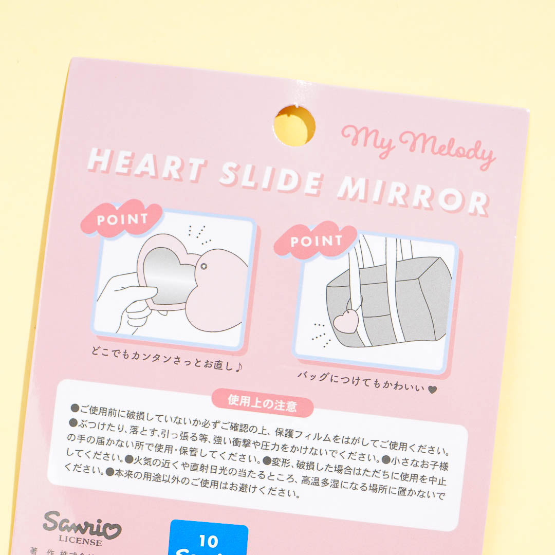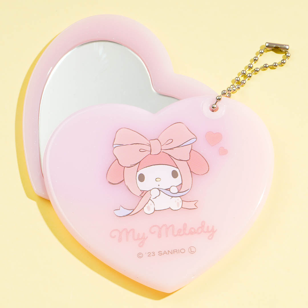 Use this kawaii heart-shaped slide mirror featuring My Melody to check your makeup! It's super handy - you can bring it wherever you go. Attach it to your favorite bag with its removable ball chain.