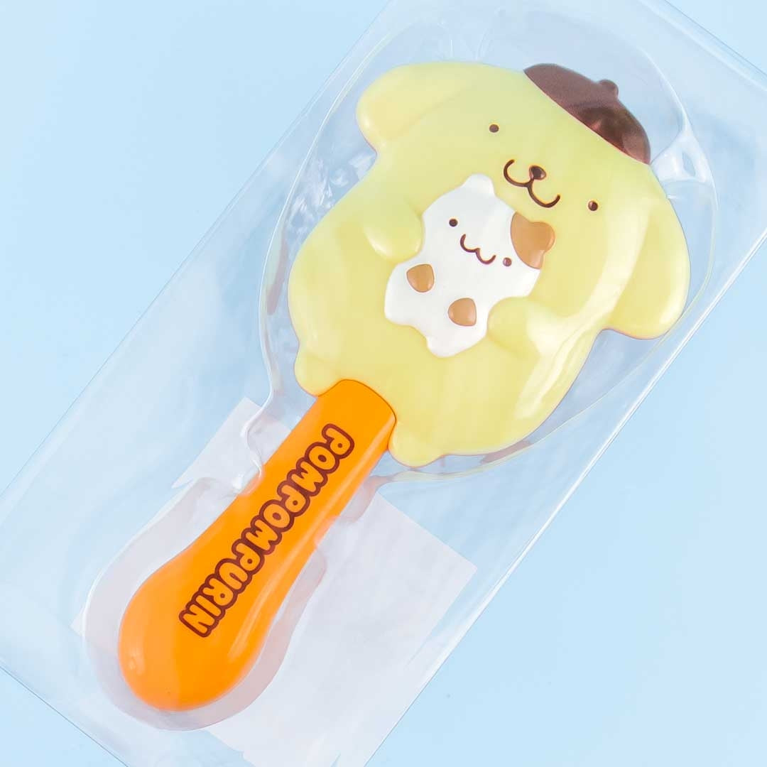 A die-cut hairbrush featuring Pompompurin and Muffin