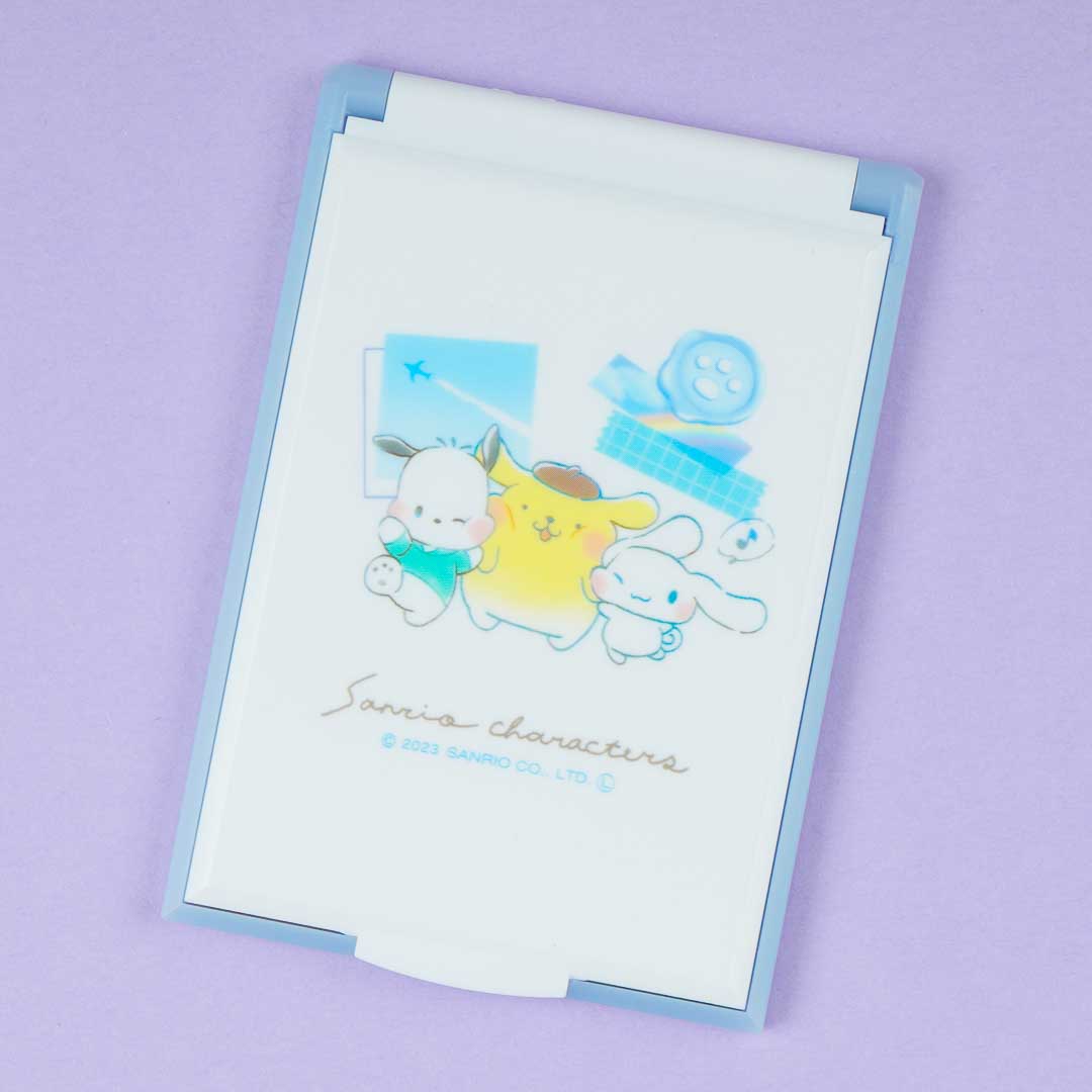 Prop this kawaii folding mirror on your desk or any flat surface so you can do quick touch-ups! It’s decorated with a super cute illustration of popular Sanrio Characters Pochacco, Pompompurin, and Cinnamoroll being happy together.