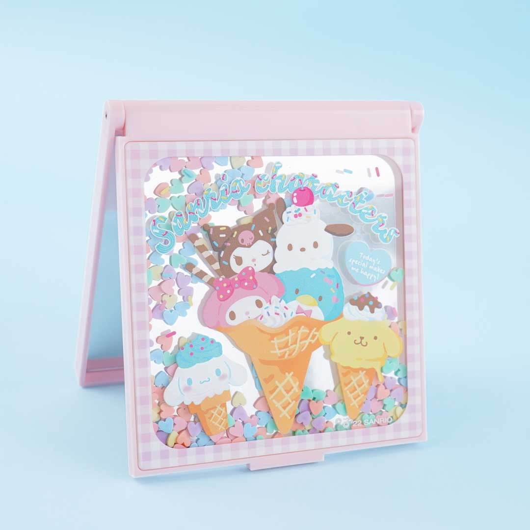 • A cute folding vanity mirror featuring Sanrio Characters on a huge ice cream