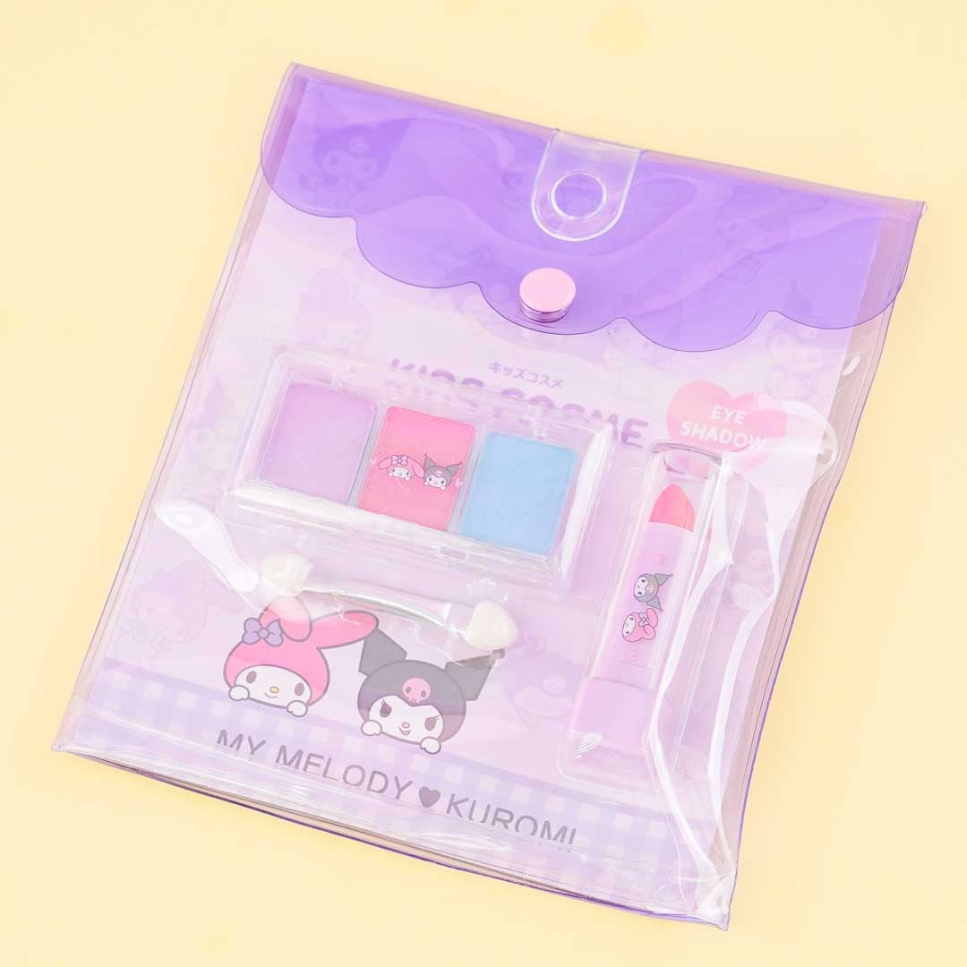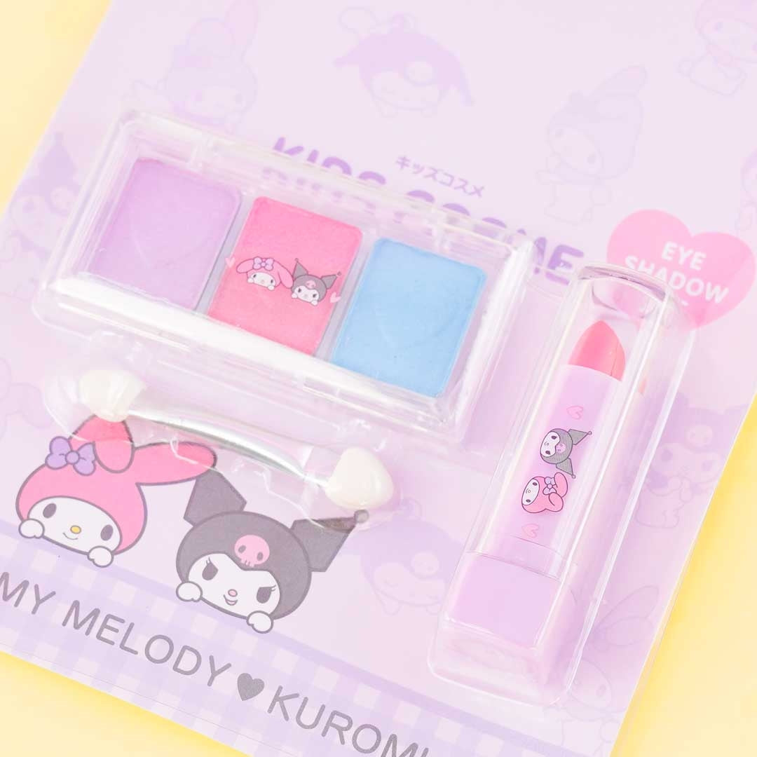 • A kawaii set consisting of an eyeshadow palette and lipstick featuring Kuromi and My Melody