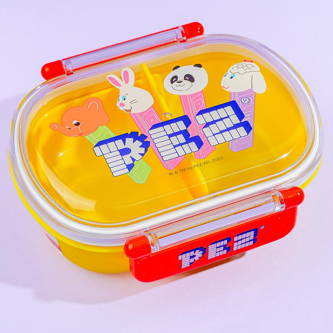 Take this kawaii lunch box with you to school or to work. It features prints of Pez dispensers with animal head decors! This lunch box has a raised lid with clasp closures and it has a detachable divider. Don't forget to remove the lid when heating your meal in the microwave!