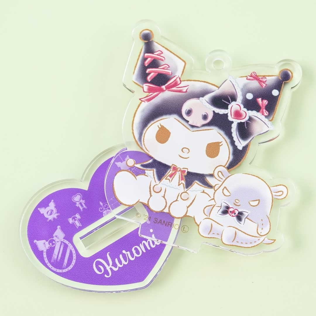 • A super kawaii 2-way acrylic heart stand featuring Kuromi sitting down