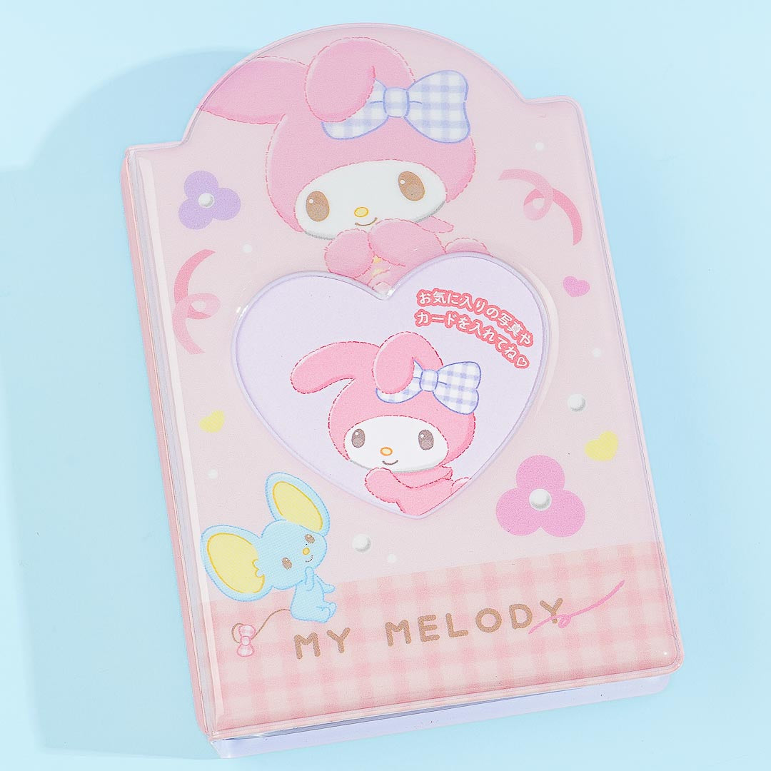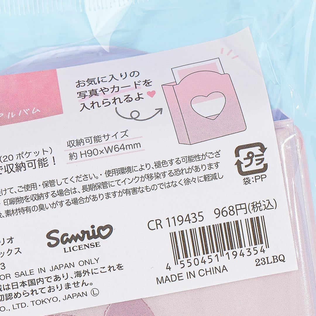 This kawaii photo album showcases a cute illustration of My Melody wearing a fluffy onesie. It's perfect for storing photos of you and your BFF! This album even features a heart-shaped outer pocket where you can place your favorite photo.