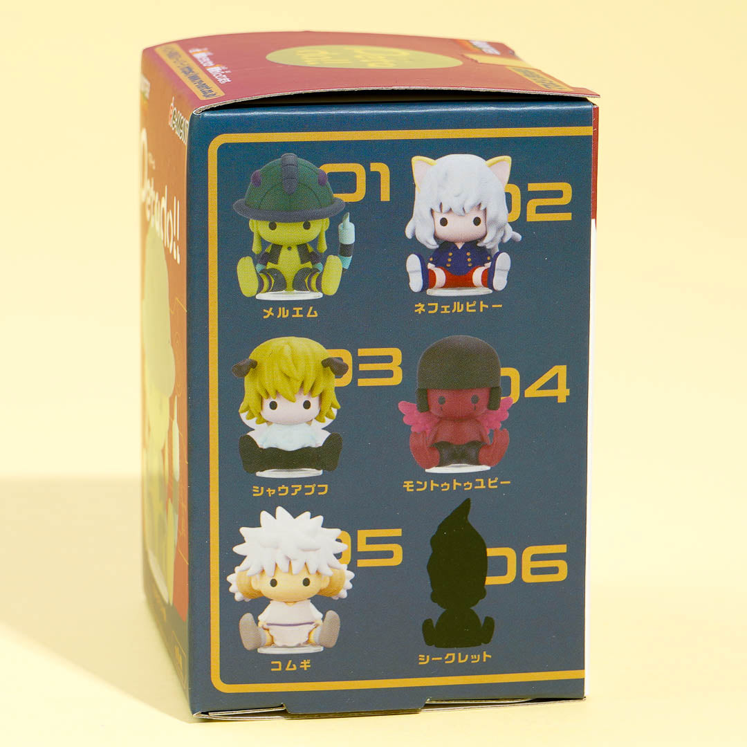 Available designs: Meruem, Neferpitou, Shaiapouf, Menthuthuyoupi, Komugi, & one secret figure