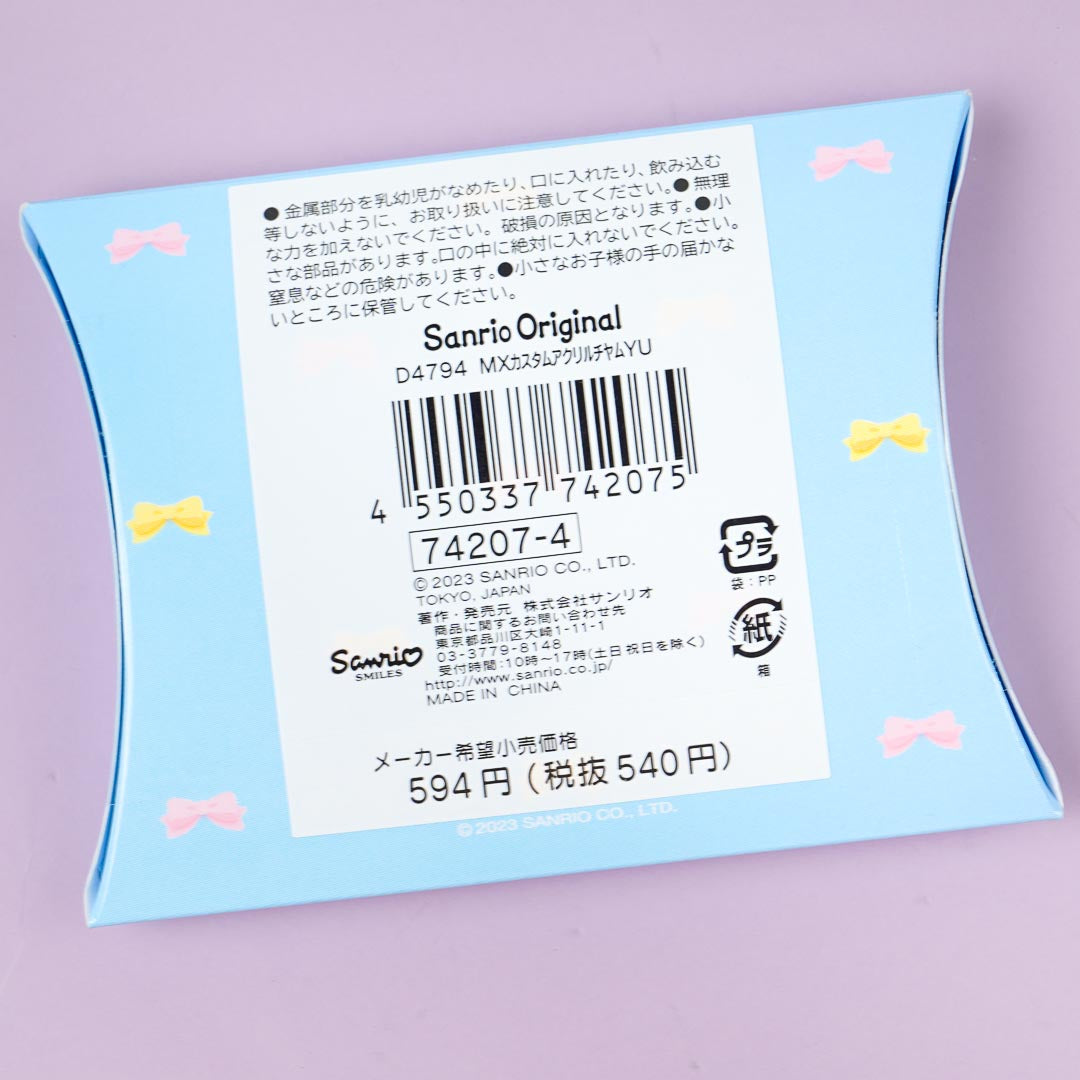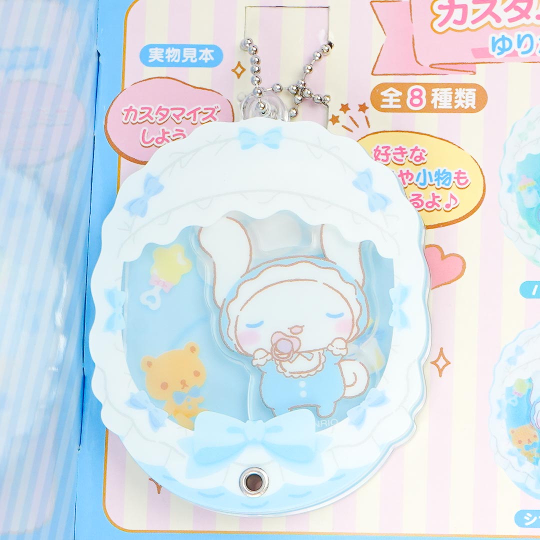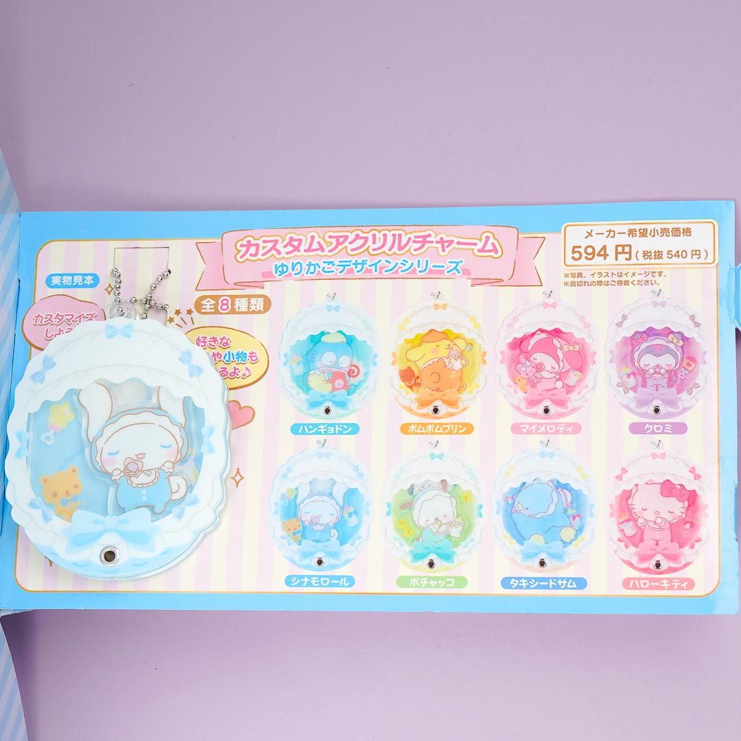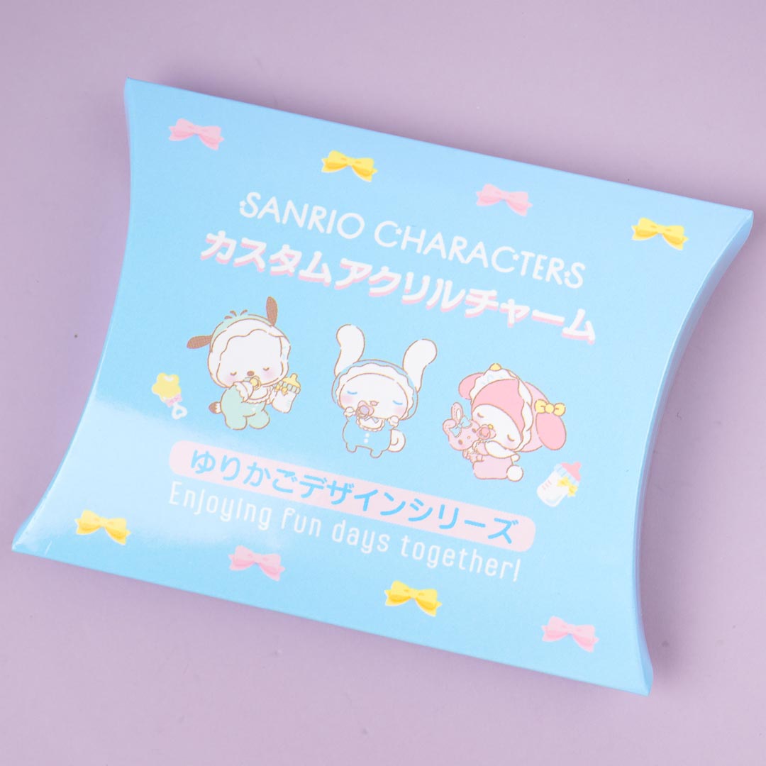 This super kawaii acrylic charm features a cute cradle design with a baby Sanrio character. It comes from the "Sanrio Characters Baby Custom Acrylic Charm" series. You can customize the charm by removing the baby and replacing it with your picture or with another character in the series. Surprise yourself with a random design - this charm comes blind-boxed so every order is always a fun mystery!