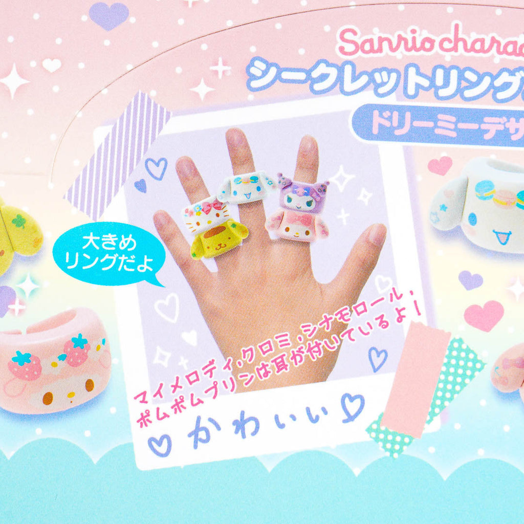 Add a touch of kawaii to your look with this cute ring featuring the dreamy-looking faces of Sanrio Characters. The large toy ring is made from resin material and comes blind-boxed so you'll get a surprise design!