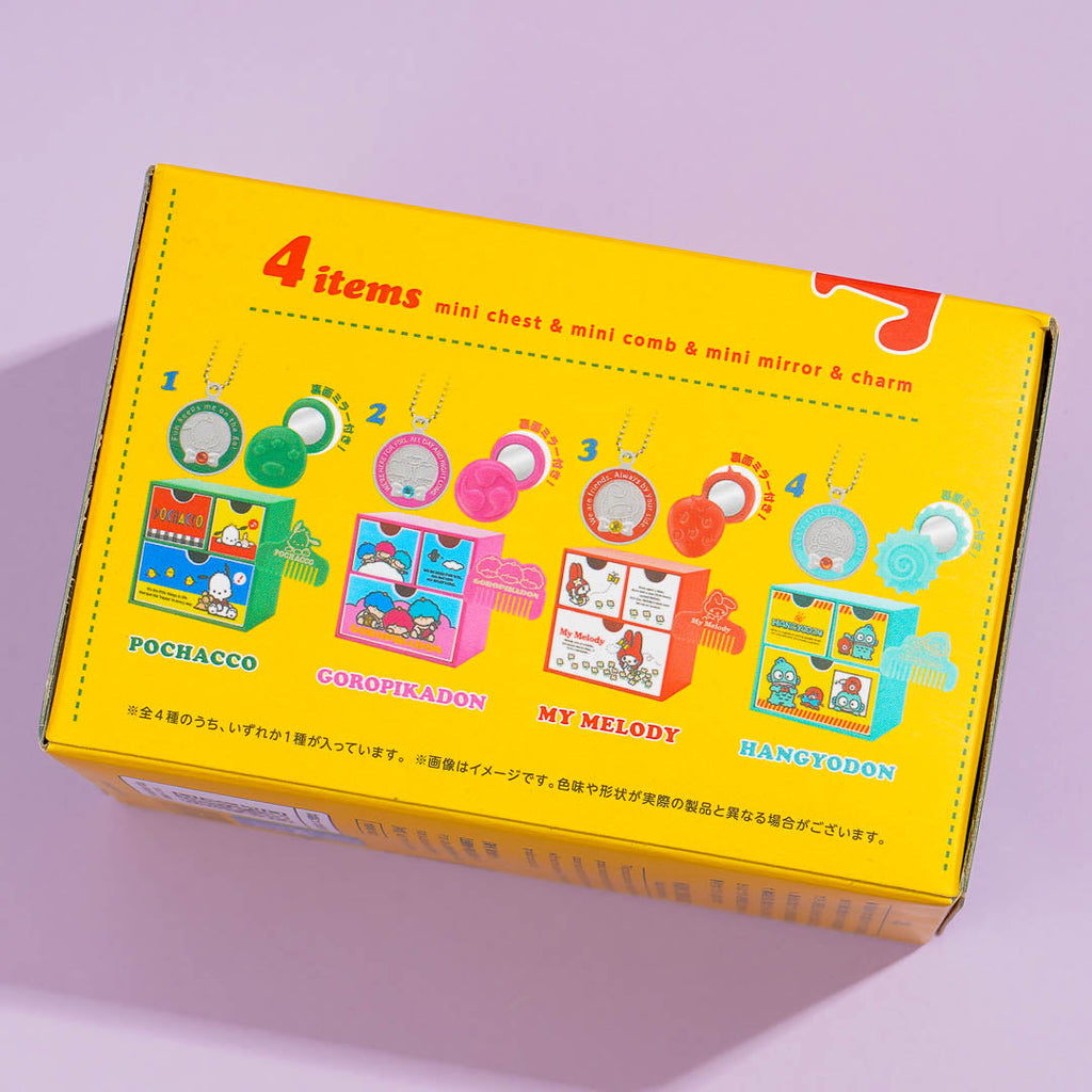 Enjoy a fun makeover game with your friends using this super cute mini chest of drawers with tiny beauty accessories! It features vintage illustrations of Sanrio Characters. This set comes in a blind box so you'll get a surprise design!
