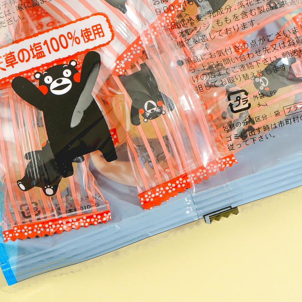 Enjoy the sweet and sour taste of Japanese plums with this pack of lightly salted hard candies. It showcases a print of Kumamon, the blushing bear of the Kumamoto Prefecture in Japan! Each individually wrapped piece is also illustrated with Kumamon. These candies are vegetarian and vegan friendly so everyone can enjoy them!