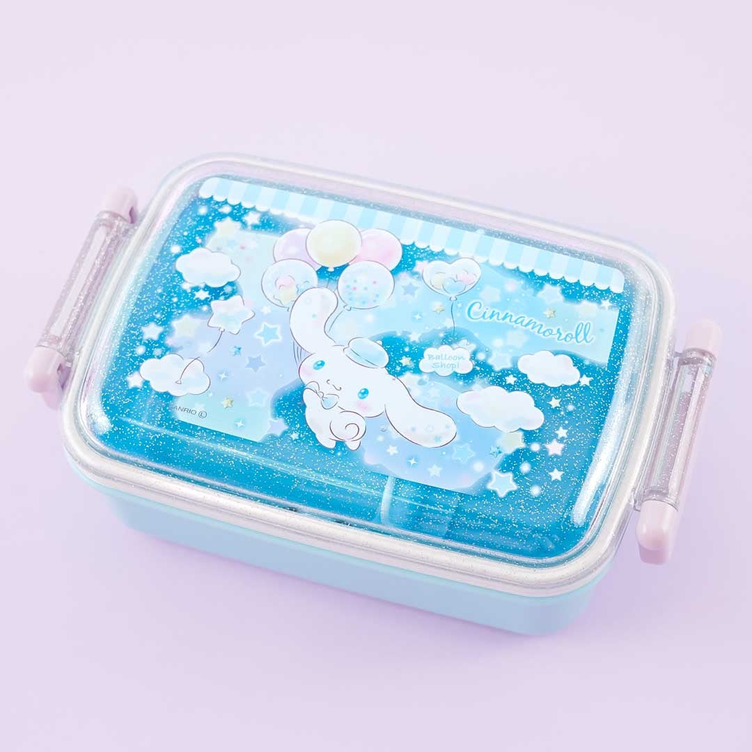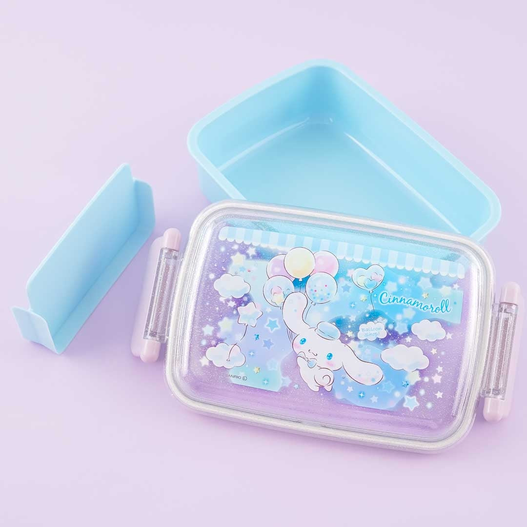 A cute rectangular lunch box set with pastel prints of Cinnamoroll dreaming about balloons