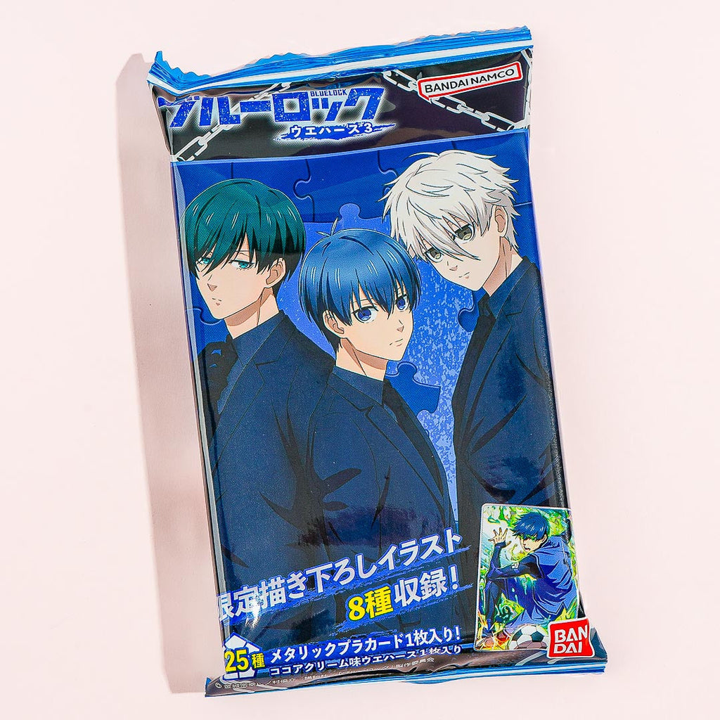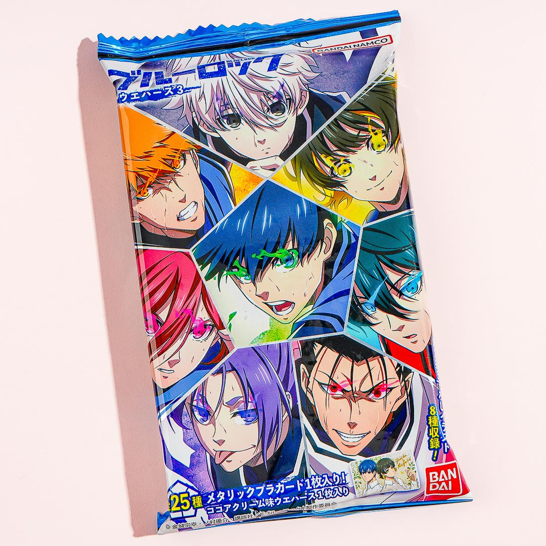 Satisfy your sweet cravings with this yummy cocoa cream-flavored wafer! This yummy snack also comes with a metallic card that has a random character from the soccer-themed animated series, “Blue Lock.” By ordering, you’ll receive a random card from the 3rd series of this anime card collection!