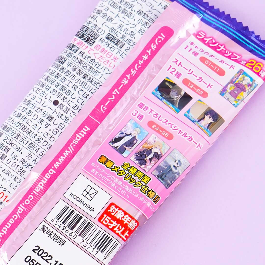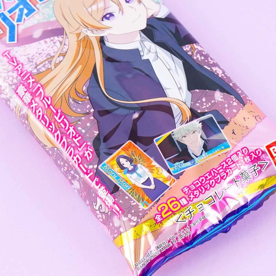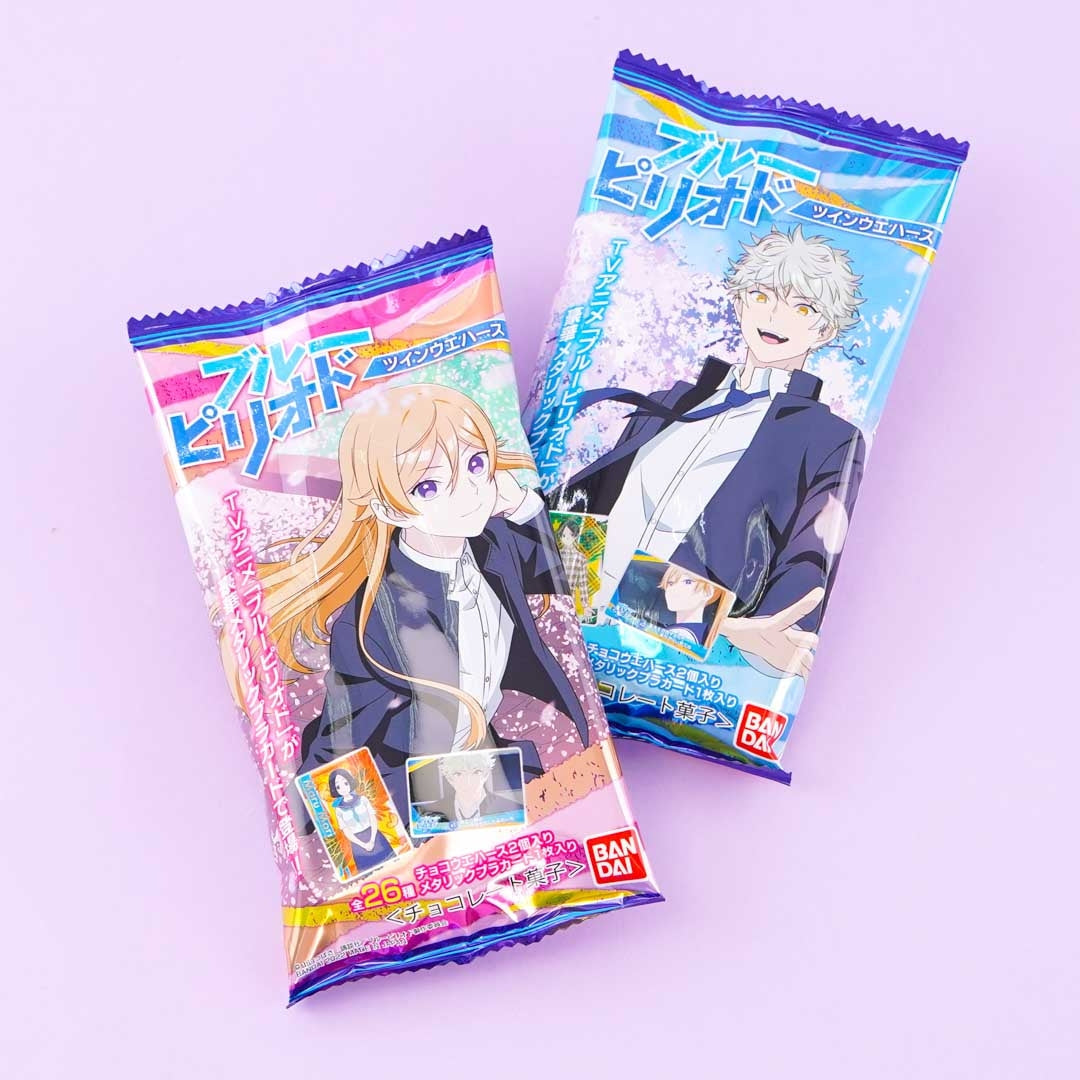 A pack with a Blue Period collectible card and 2 choco-flavored wafers
