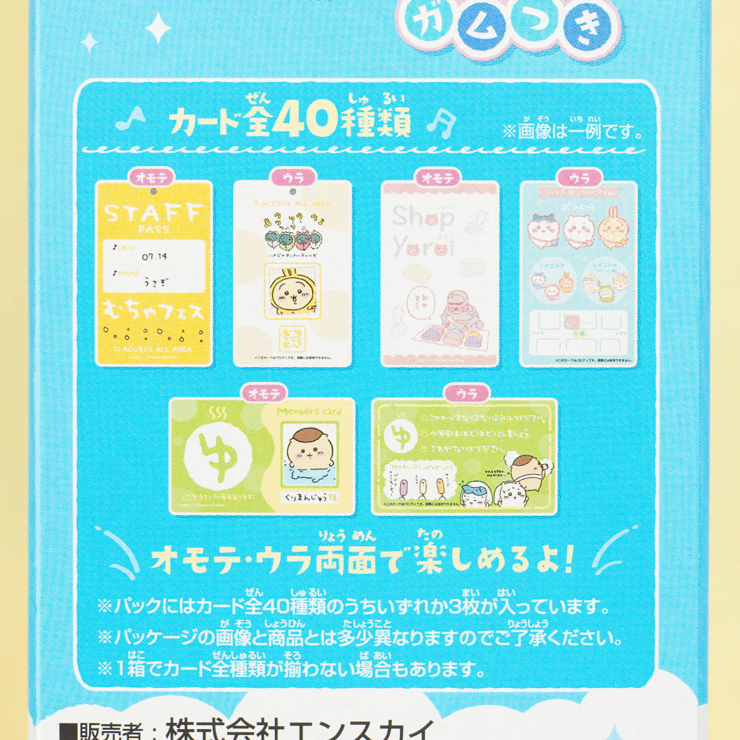 Make space in your kawaii haul for this cute collectible card set. It features prints of Chiikawa characters! This card pack comes with a stick of soda-flavored gum. Surprise yourself with random cards from a set of 40 different designs.