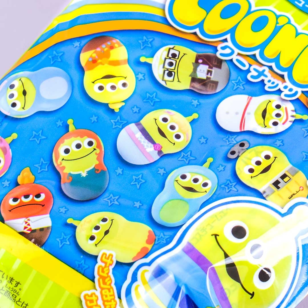 • A peanut-shaped twirling doll featuring the alien from Toy Story