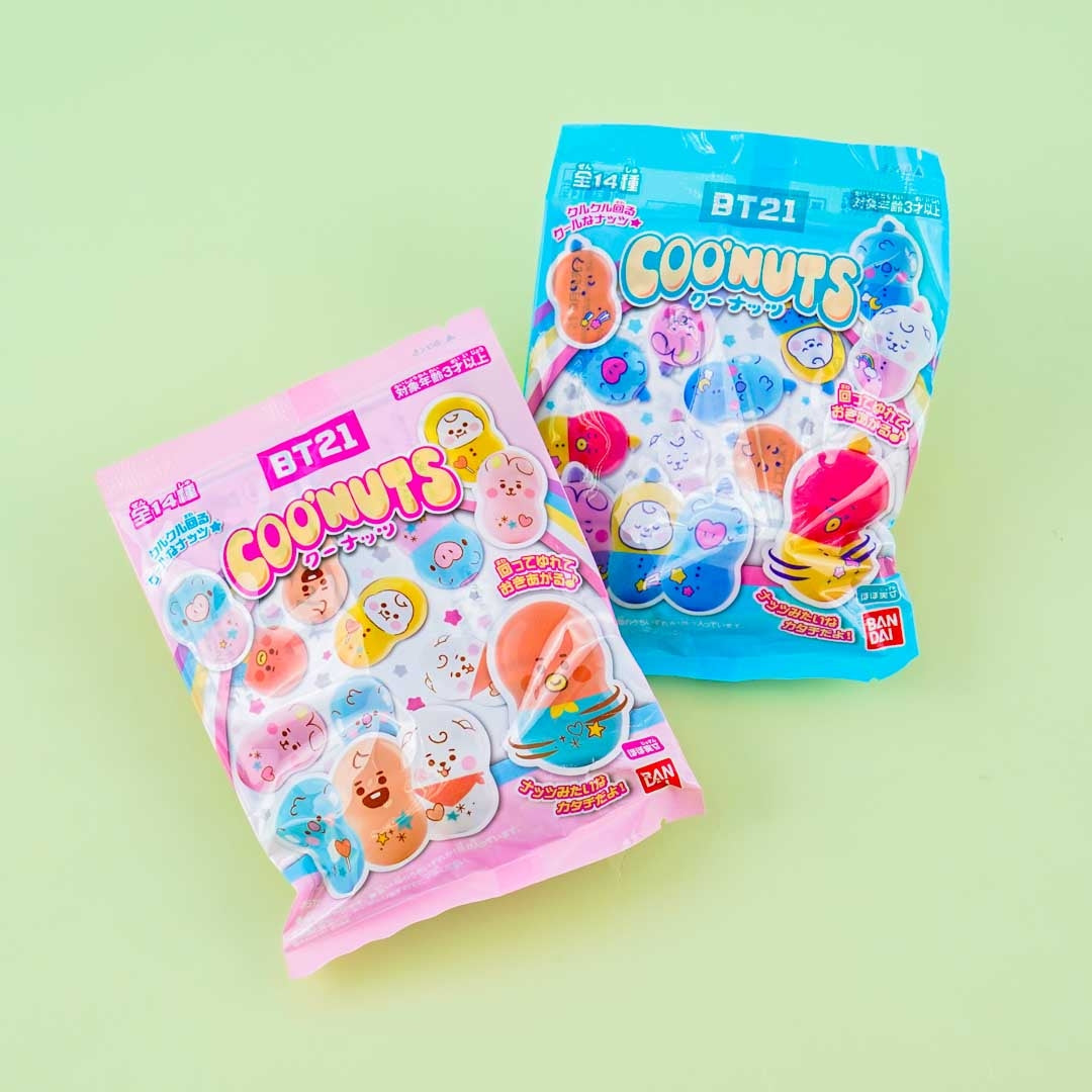 Watch as this super cute tumbler toy twirls! It comes in a unique peanut shape and features a baby version character from BT21! It also comes with free soda-flavored gum. You’ll get a random toy out of fourteen designs — either from the sketch or dream versions!