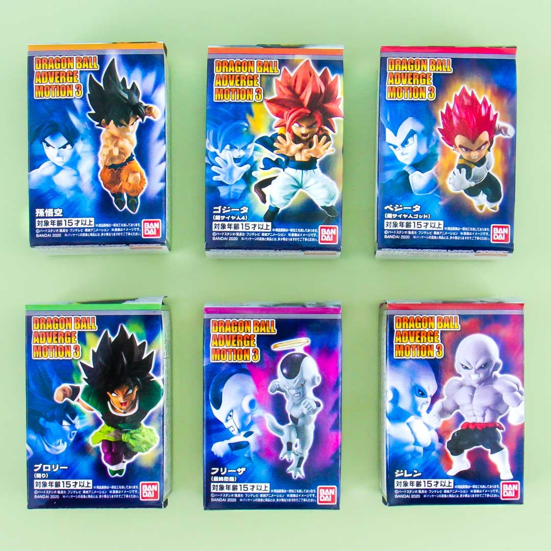 Power up with Son Goku in the latest series of Bandai's Adverge Motion figurine and gum sets. Each figurine comes with a yummy piece of gum in an intense soda flavor. When you order you'll receive one random character figurine out of 6 total.