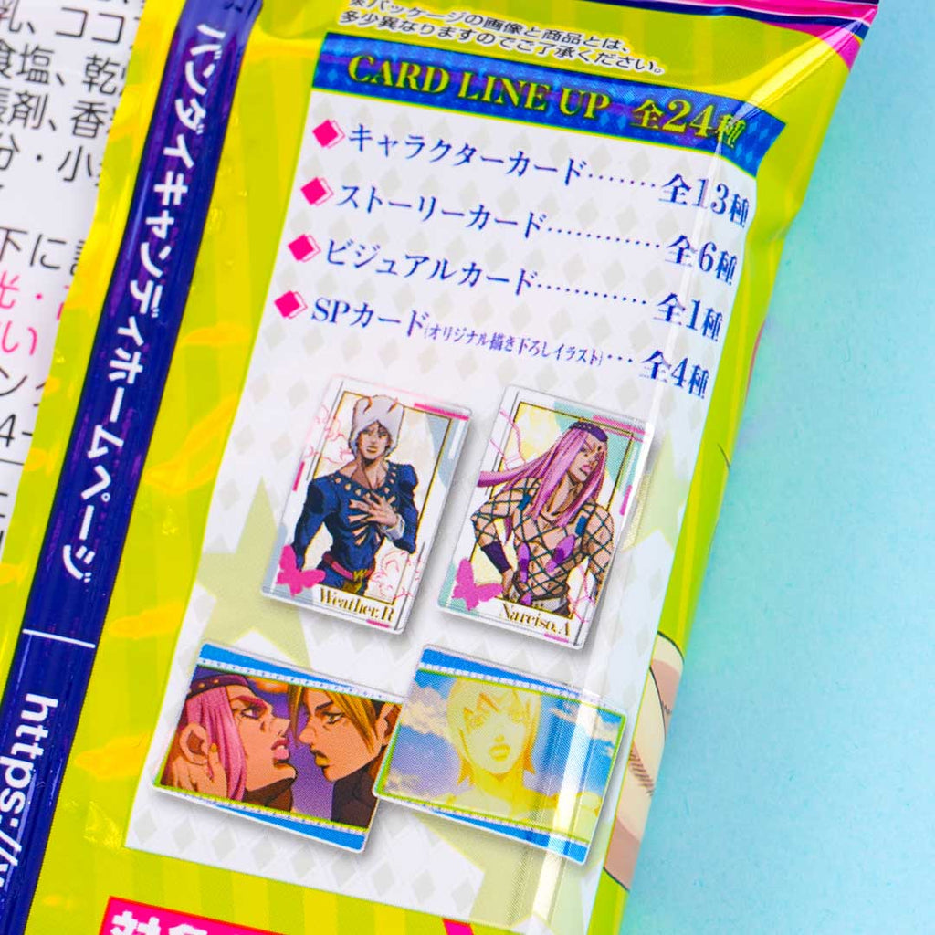 Munch on this yummy cocoa cream-flavored wafer for a quick snack! This delicious treat also comes with a free character card from the fifth season of the anime called “JoJo’s Bizarre Adventure: Stone Ocean.”