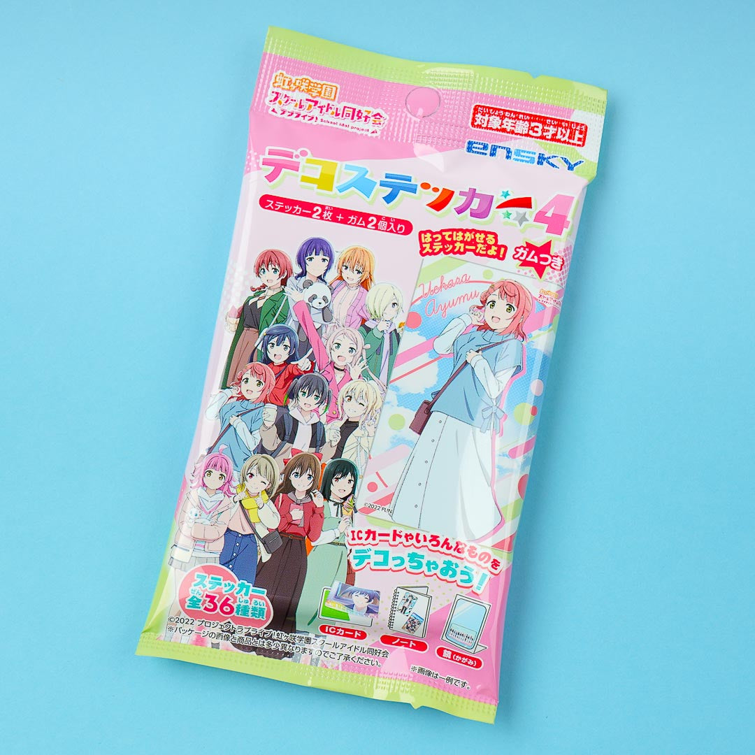 Decorate your IC card and other things like notebooks and mirrors with this sticker! The design showcases illustrations from the anime Love Life! Nijigasaki High School Idol Club. Aside from the collectible sticker, you'll also get strawberry-flavored gum.