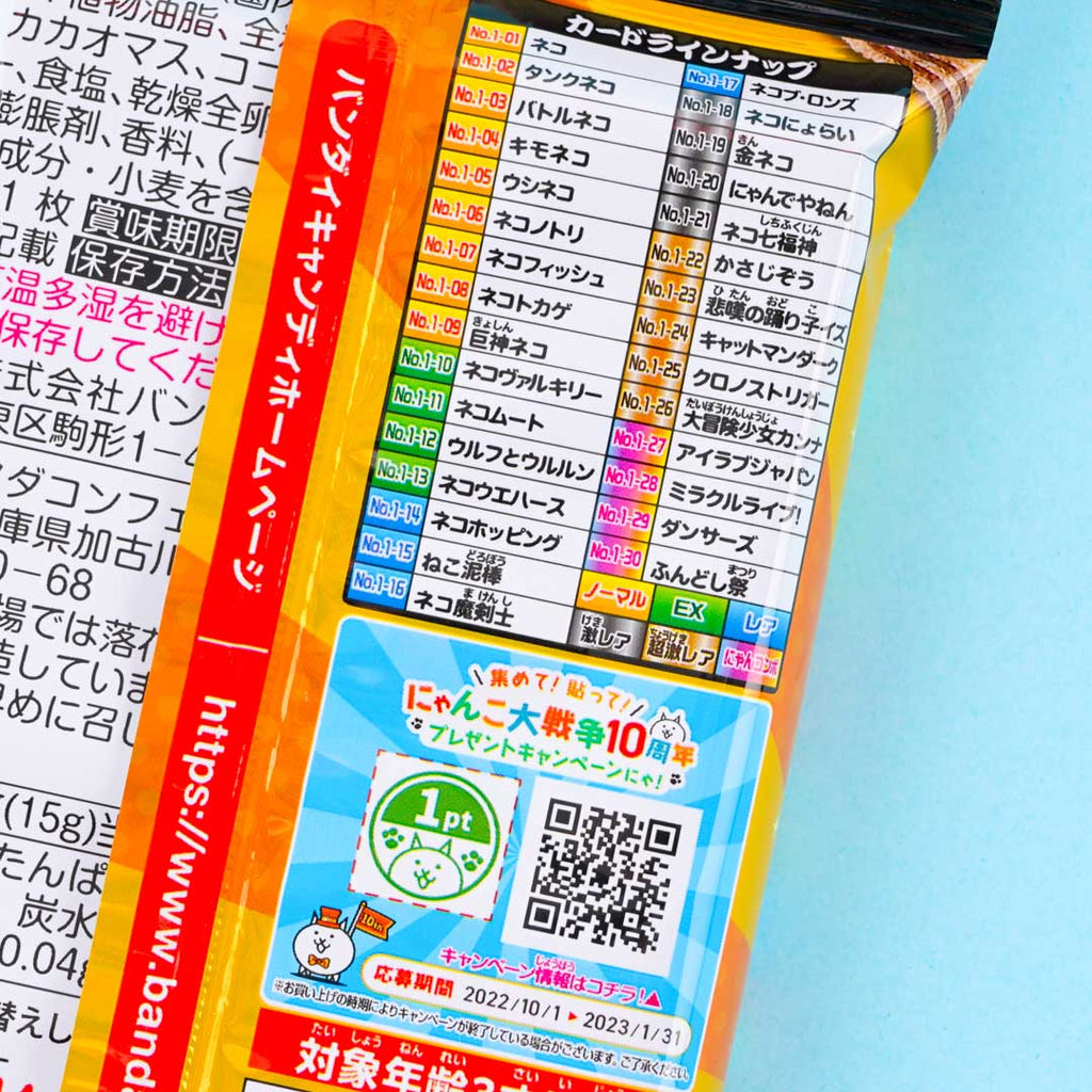 Snack on this yummy chocolate-flavored wafer while you’re on a break! This delicious treat also comes with a free character card from the popular mobile tower defense and casual game, “Nyanko Great War.”