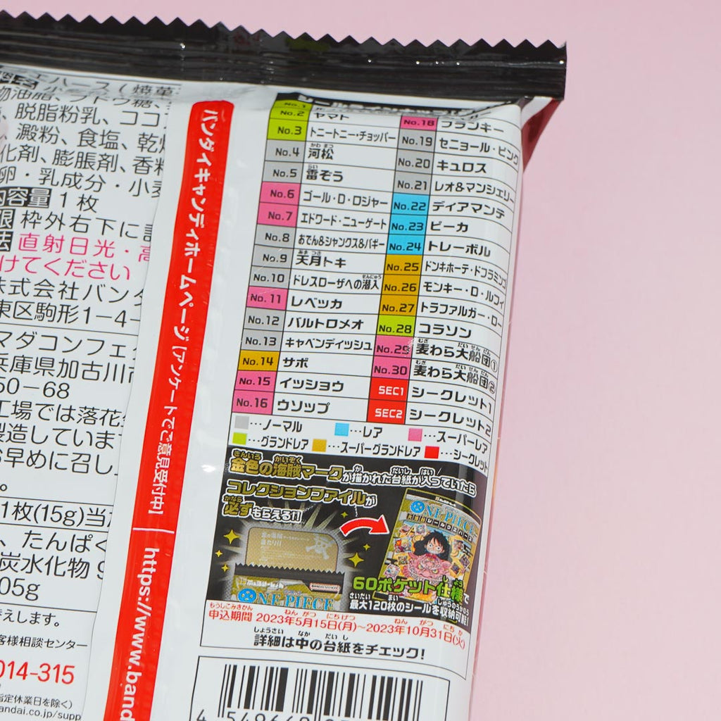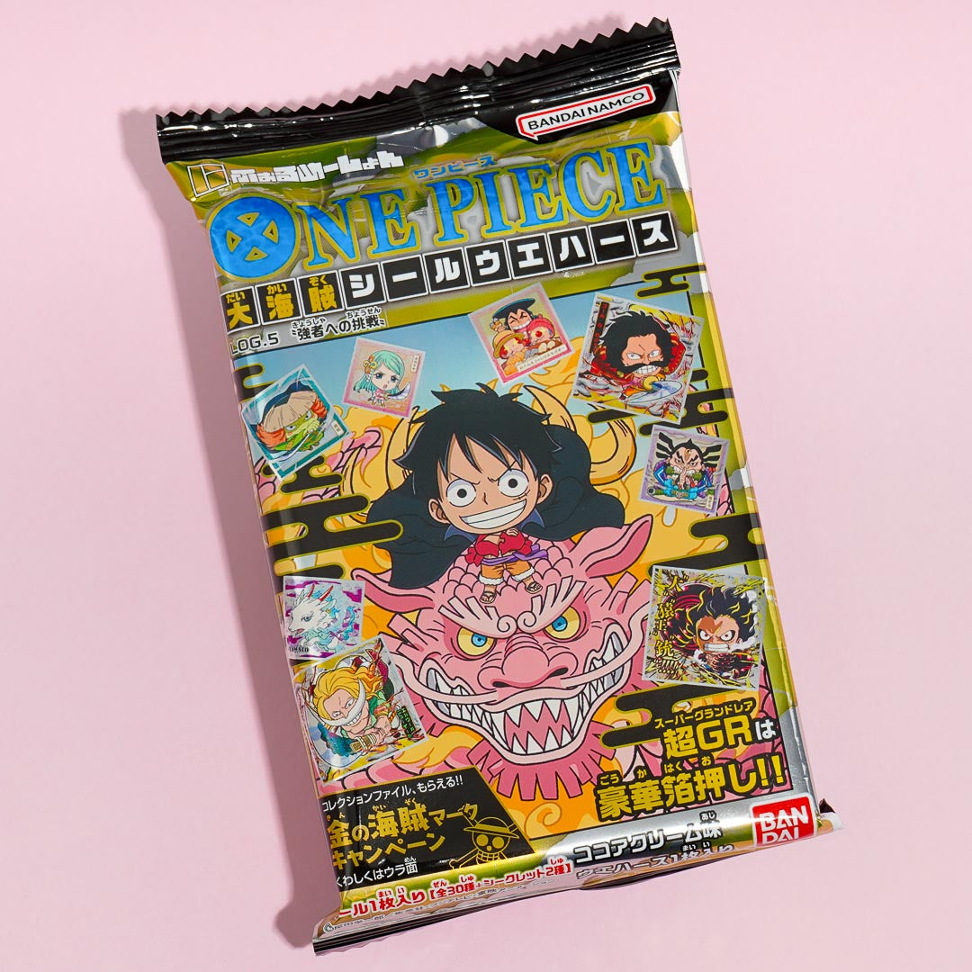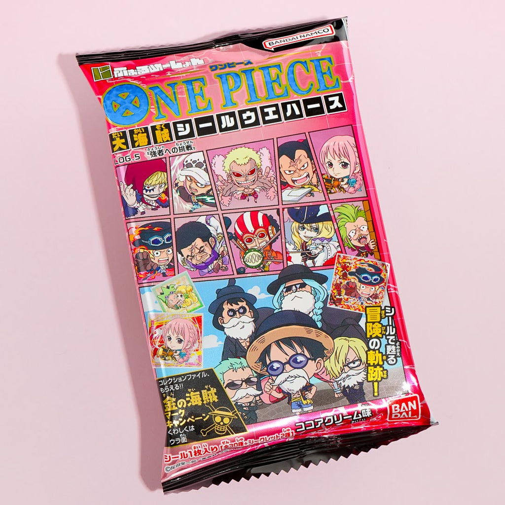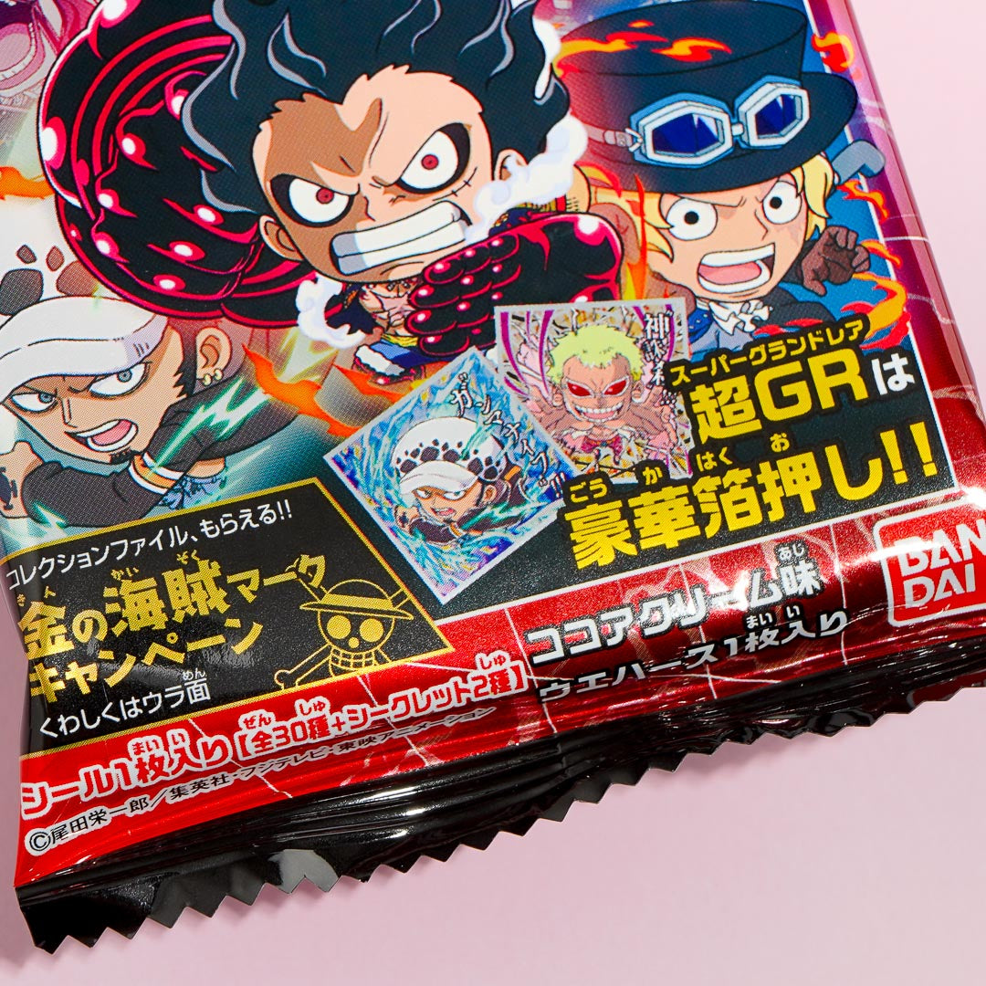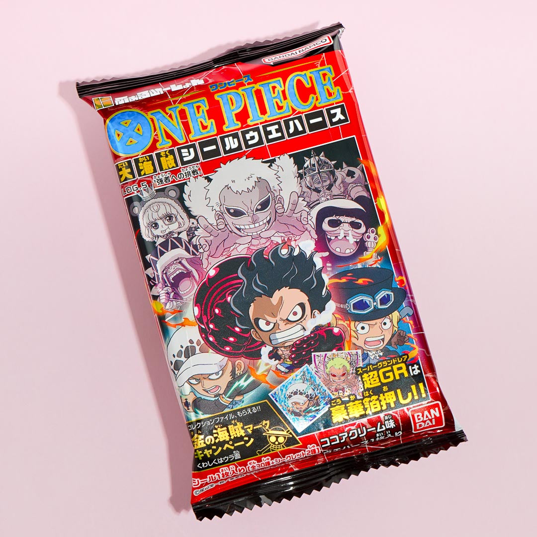 Enjoy a sweet chocolate-filled wafer while expanding your anime collection! It comes with a free foil sticker featuring the popular Japanese anime and manga, One Piece.