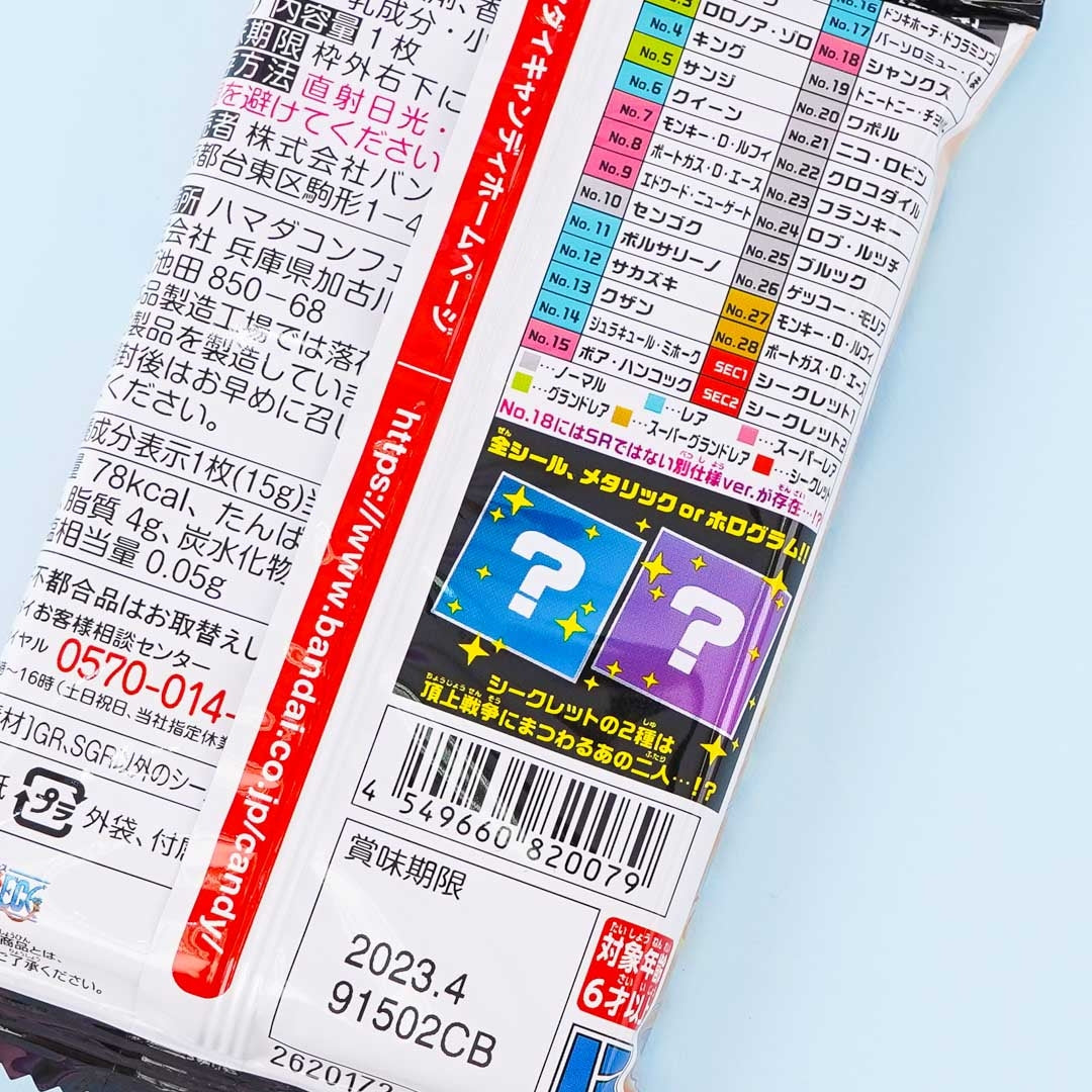 Expand your sticker collection by adding this holographic seal from the “One Piece Niformation Seal Sticker Log. 2” series — based on the iconic Japanese manga and animé! It also comes with a delicious cocoa cream-flavored wafer. Surprise yourself as you’ll receive a random square-shaped character sticker out of thirty possible designs!
