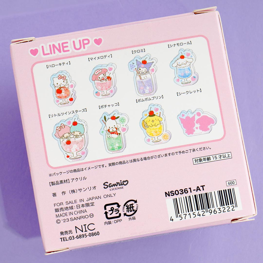 Collect all these kawaii acrylic figures! Each box comes with a figure that features an illustration of a Sanrio cutie inside a large drink. You can use it as a display to liven up your bedroom!