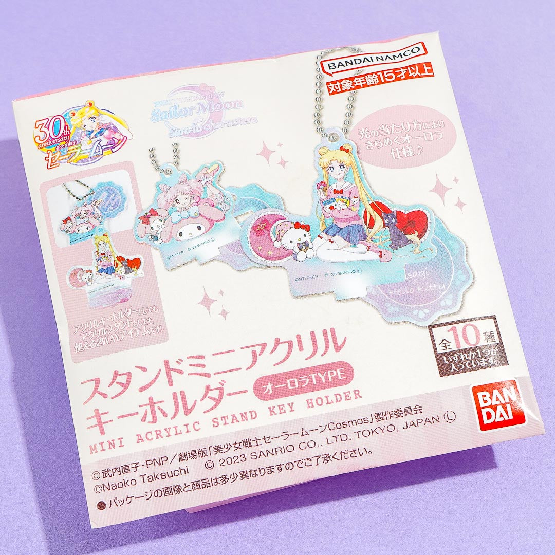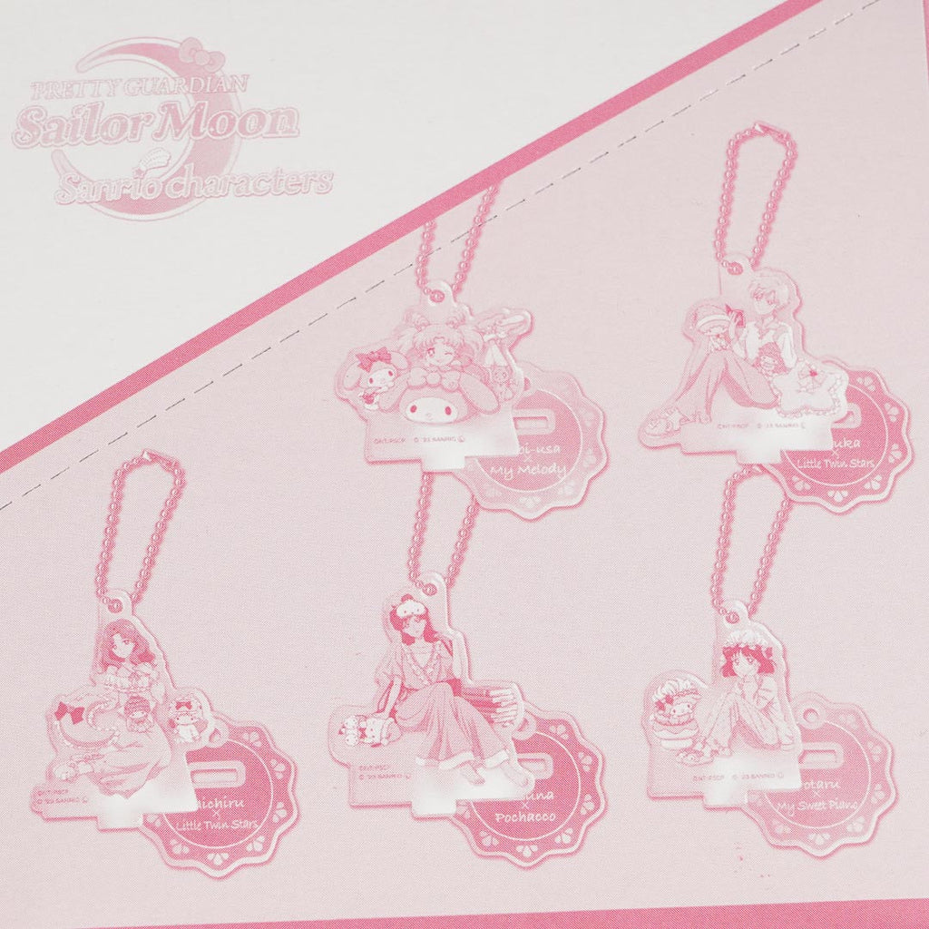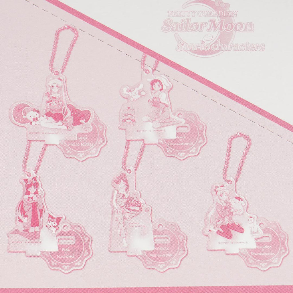 Decorate your favorite pouch with this kawaii die-cut acrylic charm showcasing a Sailor Moon character hanging out with a cutie from Sanrio. It comes from the Sanrio x Sailor Moon Guardian series. You can attach this collectible to your favorite bag with its removable ball chain.