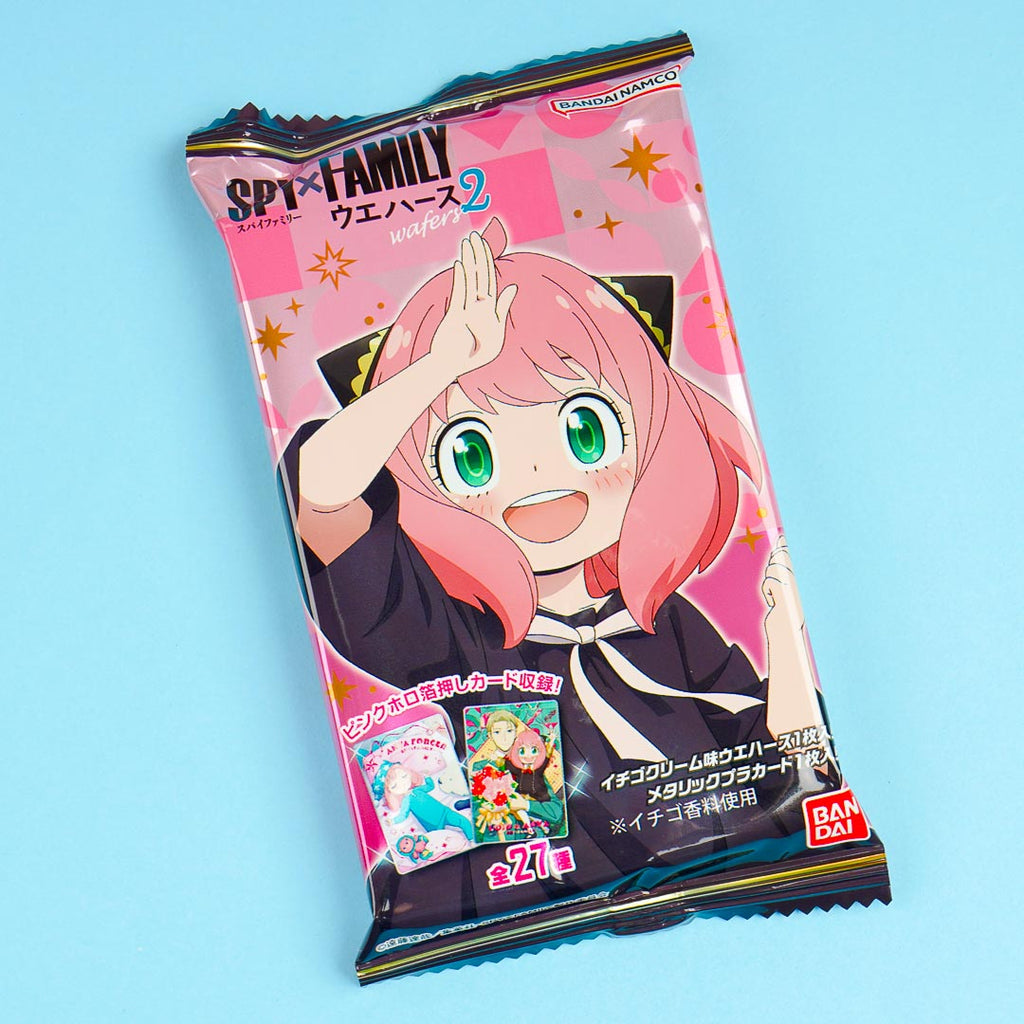 This strawberry-filled wafer comes with a free collectible card featuring the second edition of the SPY x FAMILY Shokugan Collection. Collect all cards and munch on this yummy treat!